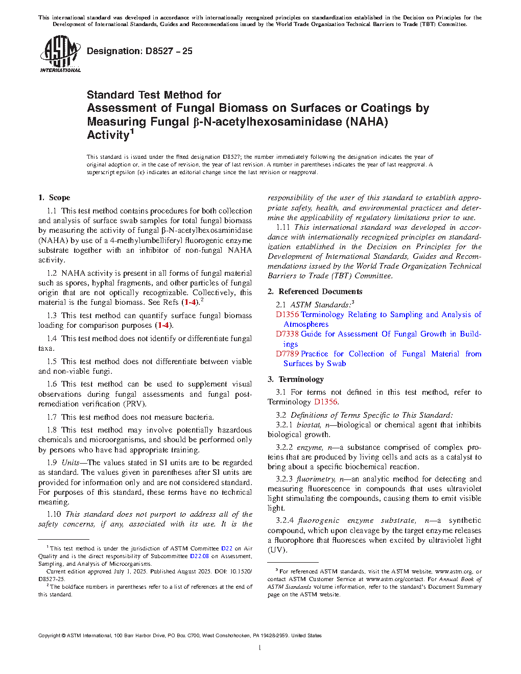 1.6 This test method can be used to supplement visual observations during fungal assessments and fungal post-remediation verification (PRV).