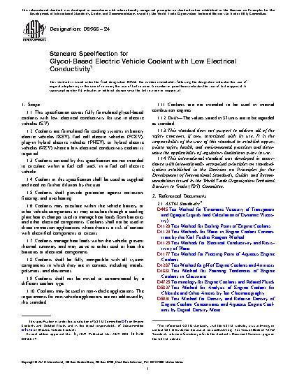 1.1 This specification covers fully formulated glycol-based coolants with low electrical conductivity for use in electric vehicles (EV).