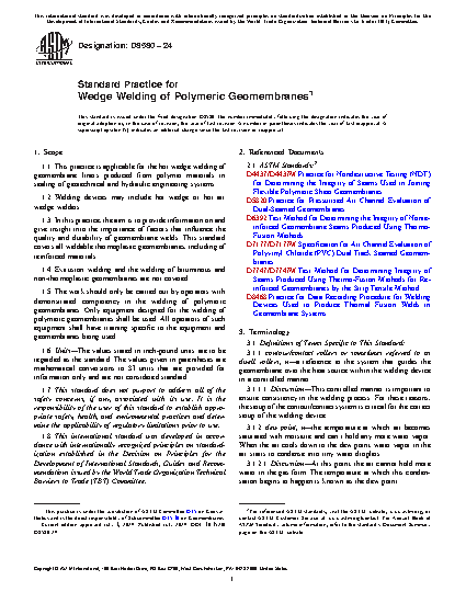 1.1 This practice is applicable for the hot wedge welding of geomembrane liners produced from polymer materials in sealing of geotechnical and hydraulic engineering systems.