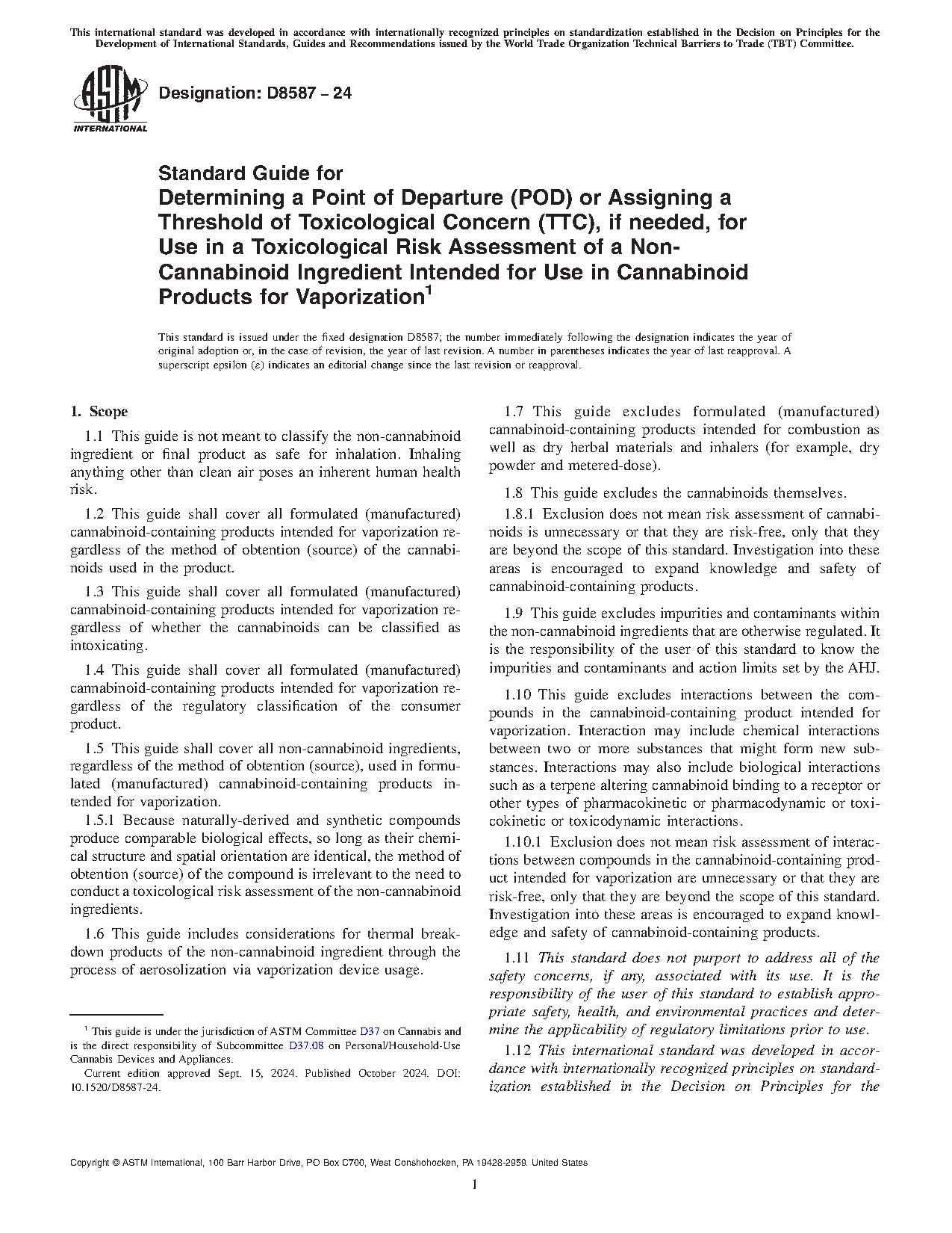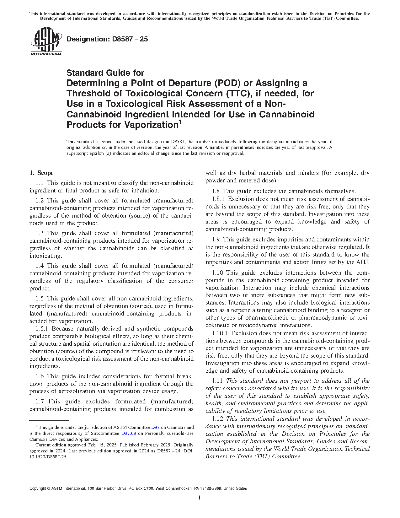 1.5 This guide shall cover all non-cannabinoid ingredients, regardless of the method of obtention (source), used in formulated (manufactured) cannabinoid-containing products intended for vaporization.