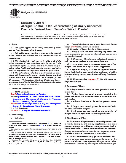 5.5 Because the allergen control principles in this guide integrate national and international regulatory requirements, Codex Alimentarius Commission standards, and industry guidance for traditional foods and dietary supplements, they apply to the manufacture of all products that contain ingredients derived from Cannabis sativa plants, regardless of their regulatory status or cannabinoid content.