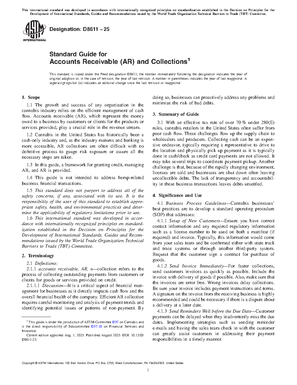 1.2 Cannabis in the United States has historically been a cash-only industry and, as the industry matures and banking is more accessible, AR collections are often difficult with no definitive process to gauge risk exposure or assure all the necessary steps are taken.