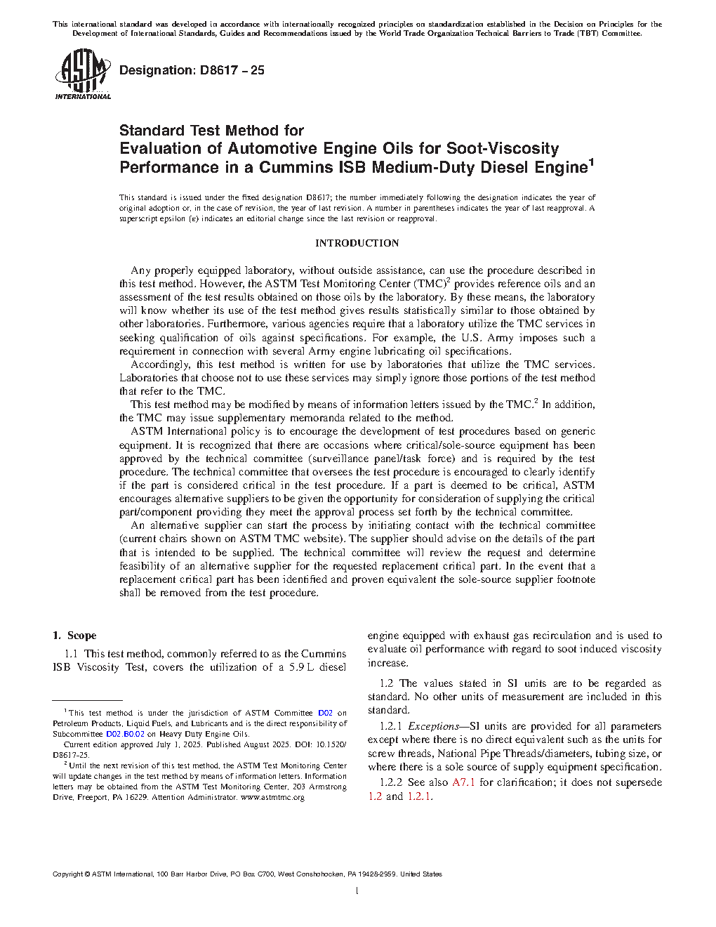1.1 This test method, commonly referred to as the Cummins ISB Viscosity Test, covers the utilization of a 5.9 L diesel engine equipped with exhaust gas recirculation and is used to evaluate oil performance with regard to soot induced viscosity increase.