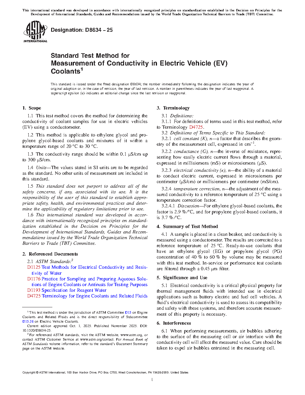 1.1 This test method covers the method for determining the conductivity of coolant samples for use in electric vehicles (EV) using a conductometer.