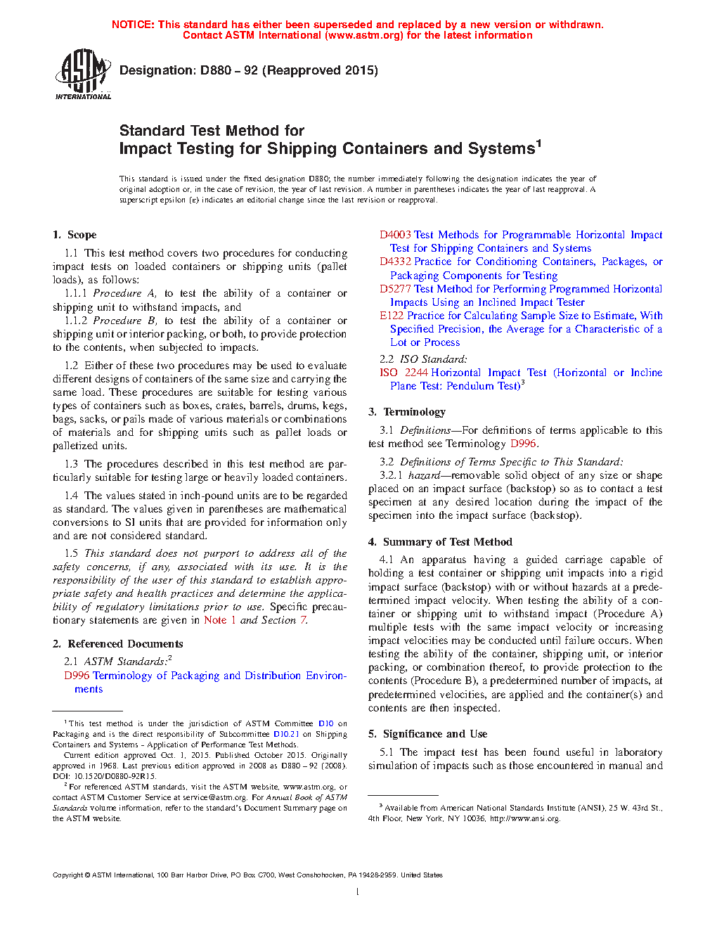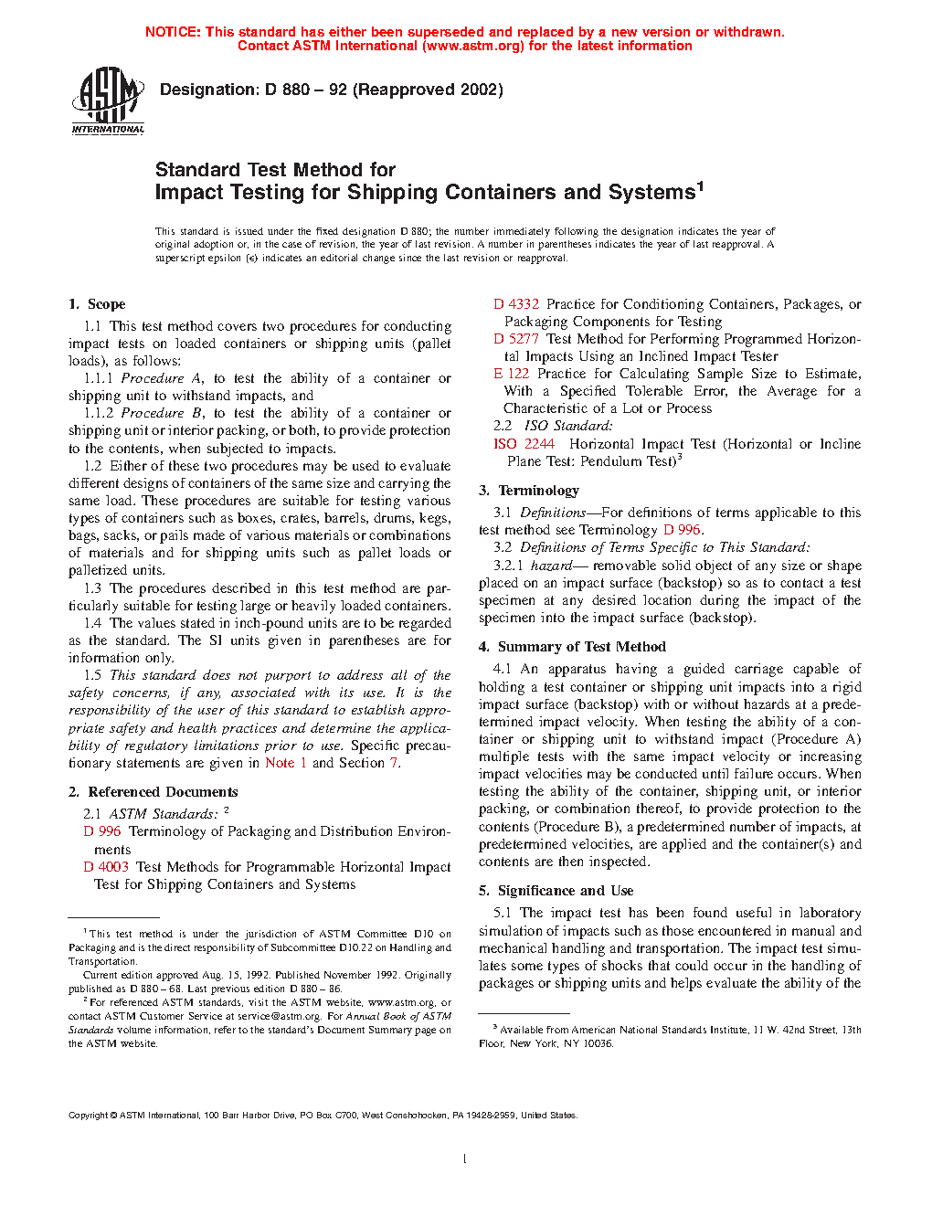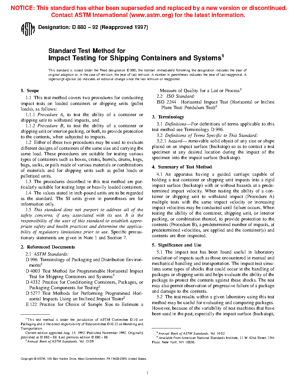 1.1.1 Procedure A, to test the ability of a container or shipping unit to withstand impacts, and