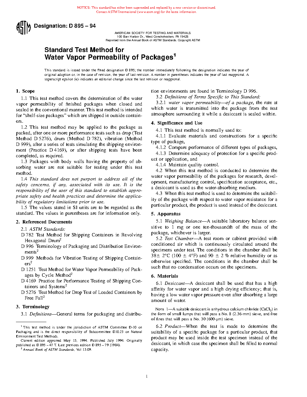 1.3 Packages with body walls having the property of absorbing water are not suitable for testing under this test method.