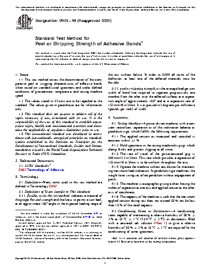 1.1 This test method covers the determination of the comparative peel or stripping characteristics of adhesive bonds when tested on standard-sized specimens and under defined conditions of pretreatment, temperature, and testing machine speed.
