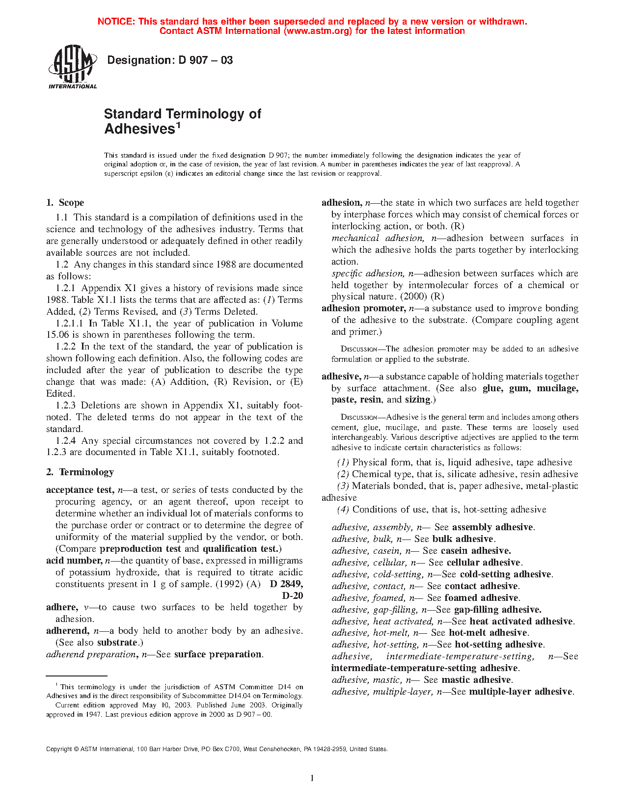 1.1 This terminology standard is a compilation of definitions used in the science and technology of the adhesives industry. Terms that are generally understood or adequately defined in other readily available sources are not included.