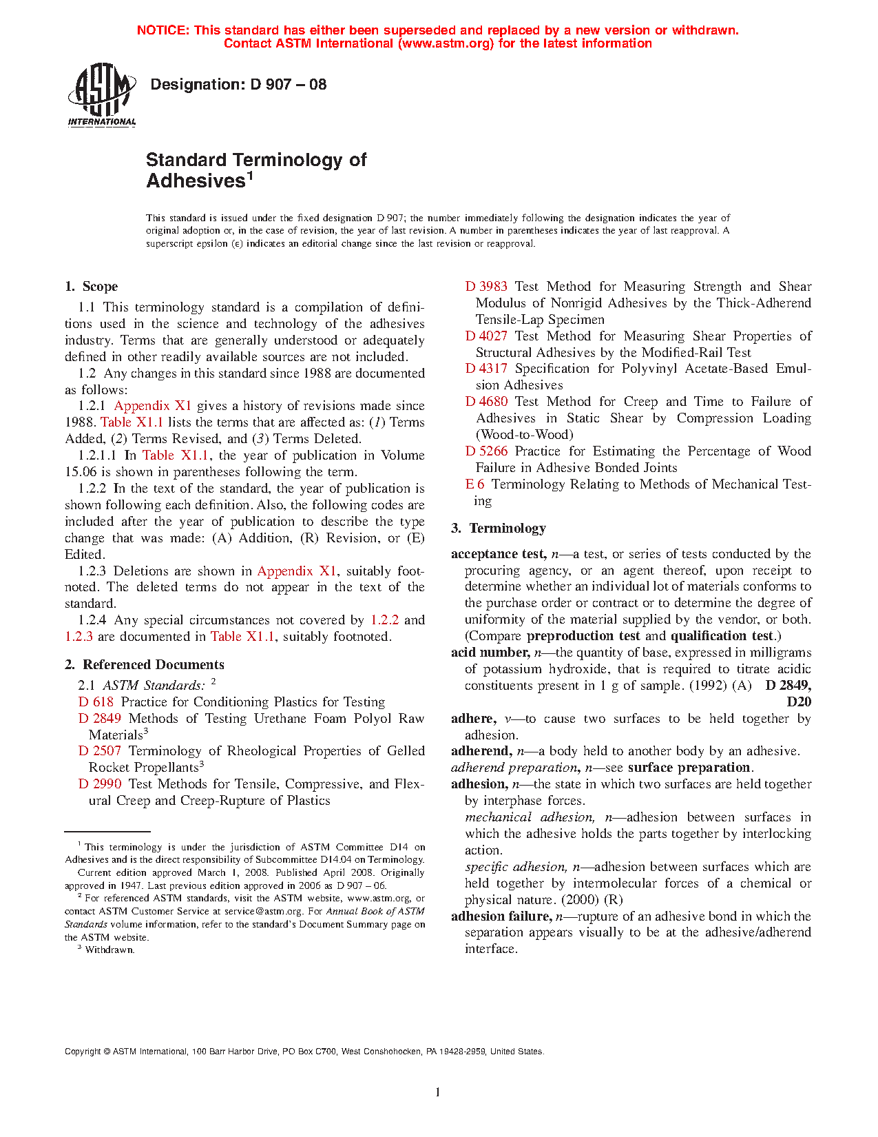 1.2.1 Appendix X1 gives a history of revisions made since 1988. Table X1.1 lists the terms that are affected as: (1) Terms Added, (2) Terms Revised, and (3) Terms Deleted.