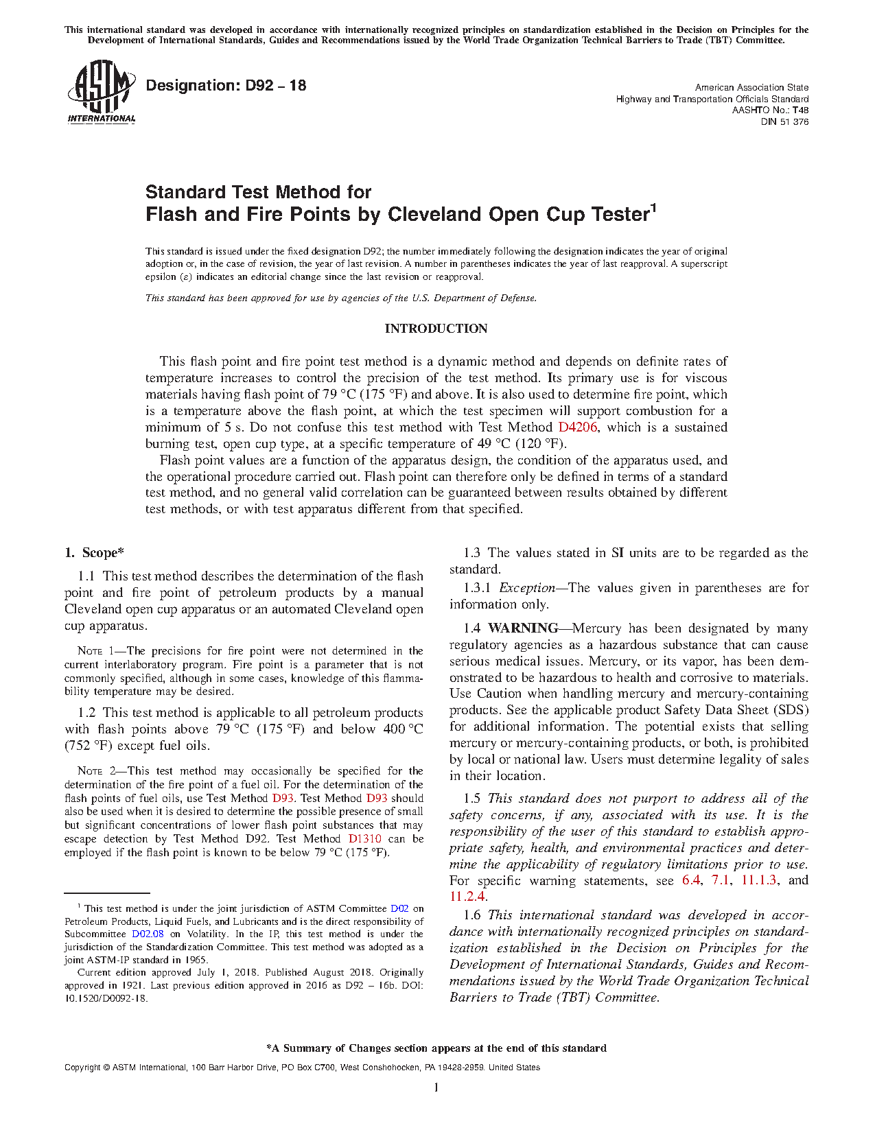 1.1 This test method describes the determination of the flash and fire point of petroleum products by a manual Cleveland open cup apparatus or an automated Cleveland open cup apparatus.