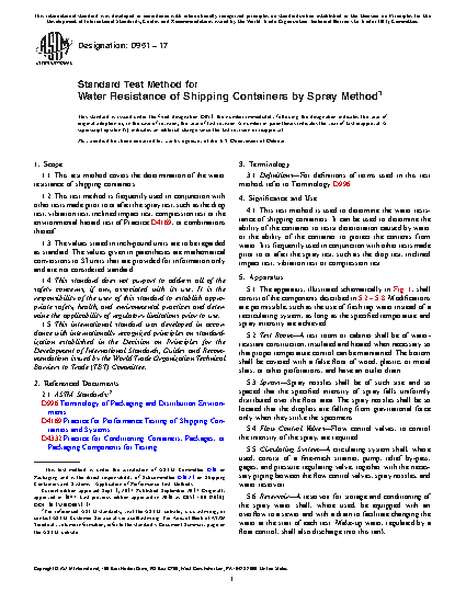 Standard Test Method for Water Resistance of Shipping Containers by Spray Method