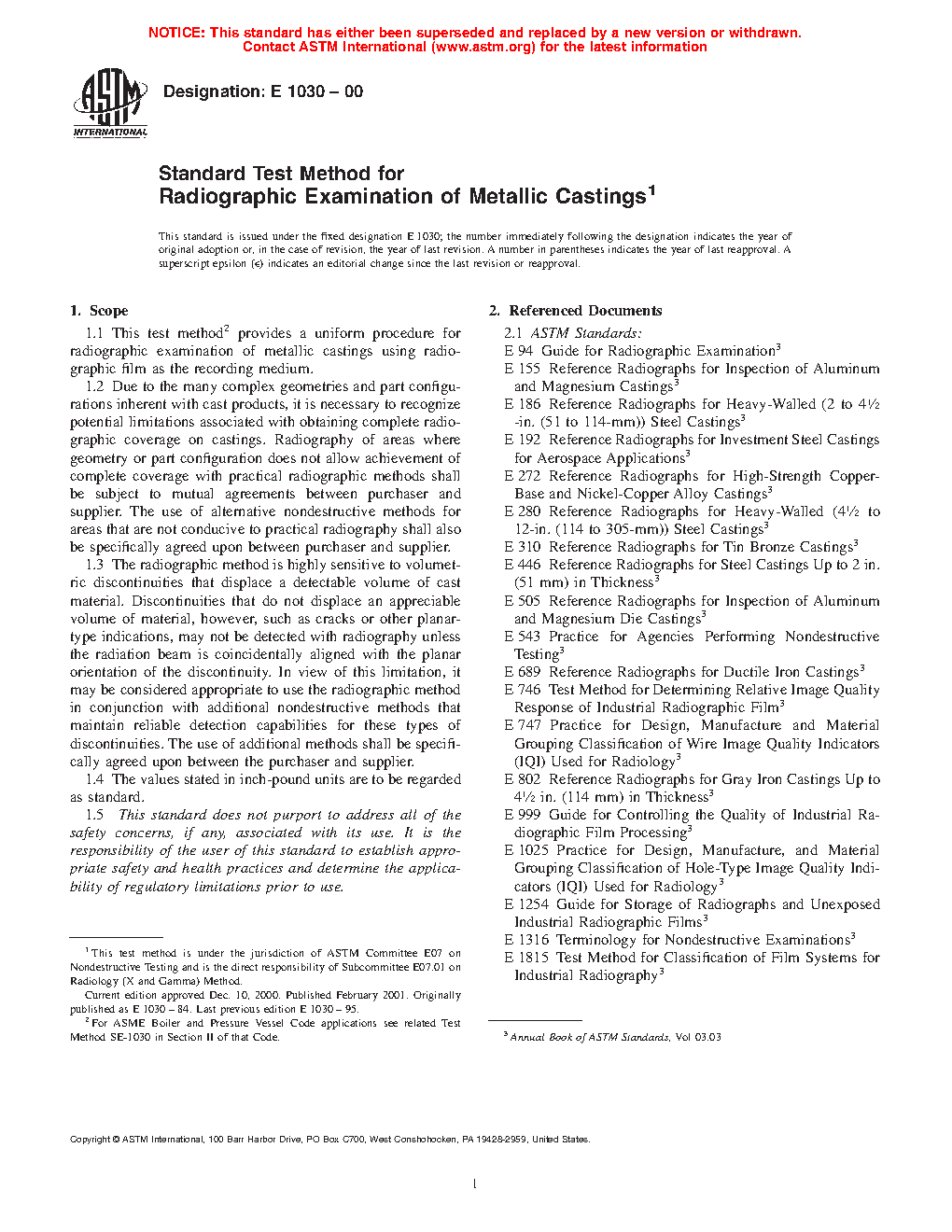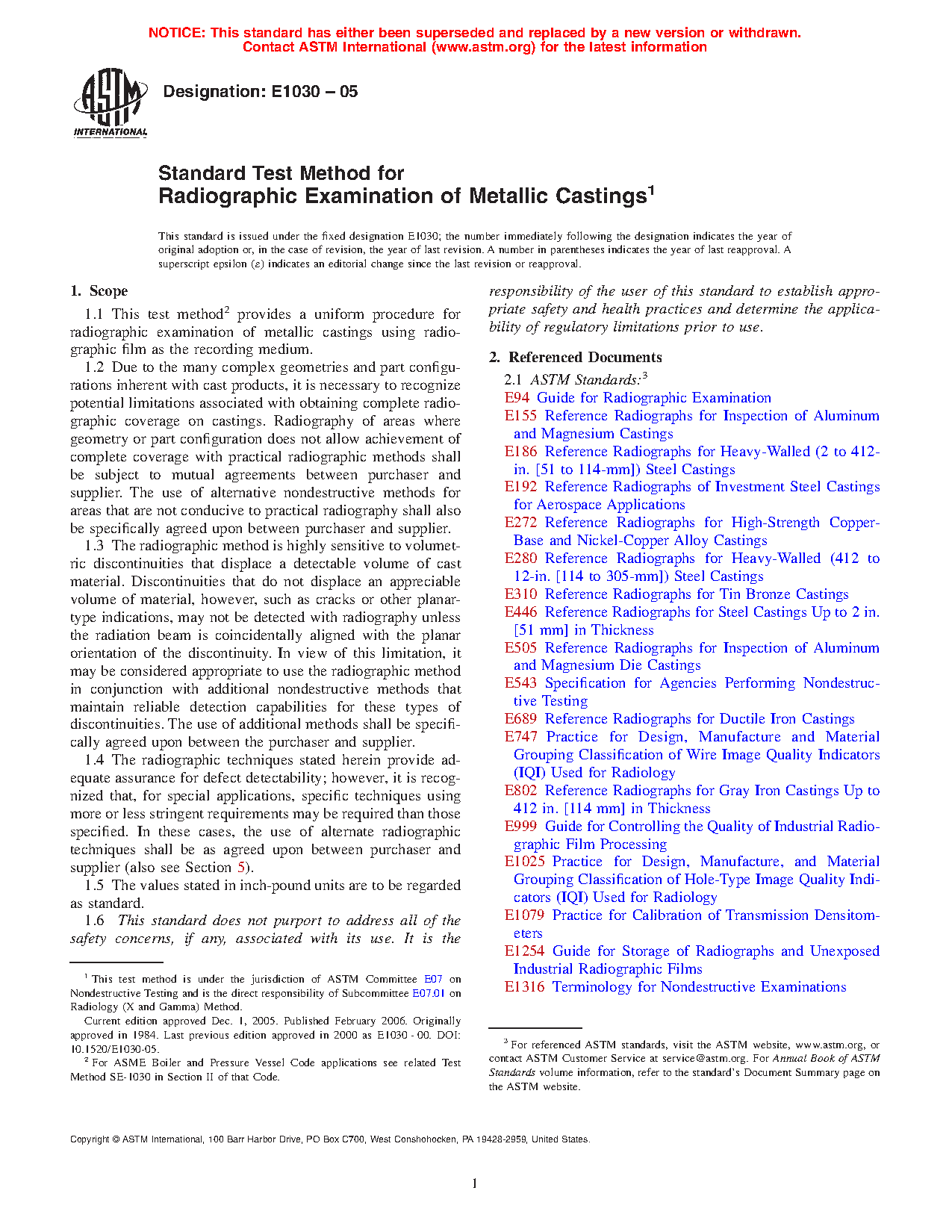 1.4 The radiographic techniques stated herein provide adequate assurance for defect detectability; however, it is recognized that, for special applications, specific techniques using more or less stringent requirements may be required than those specified. In these cases, the use of alternate radiographic techniques shall be as agreed upon between purchaser and supplier (also see Section 5).