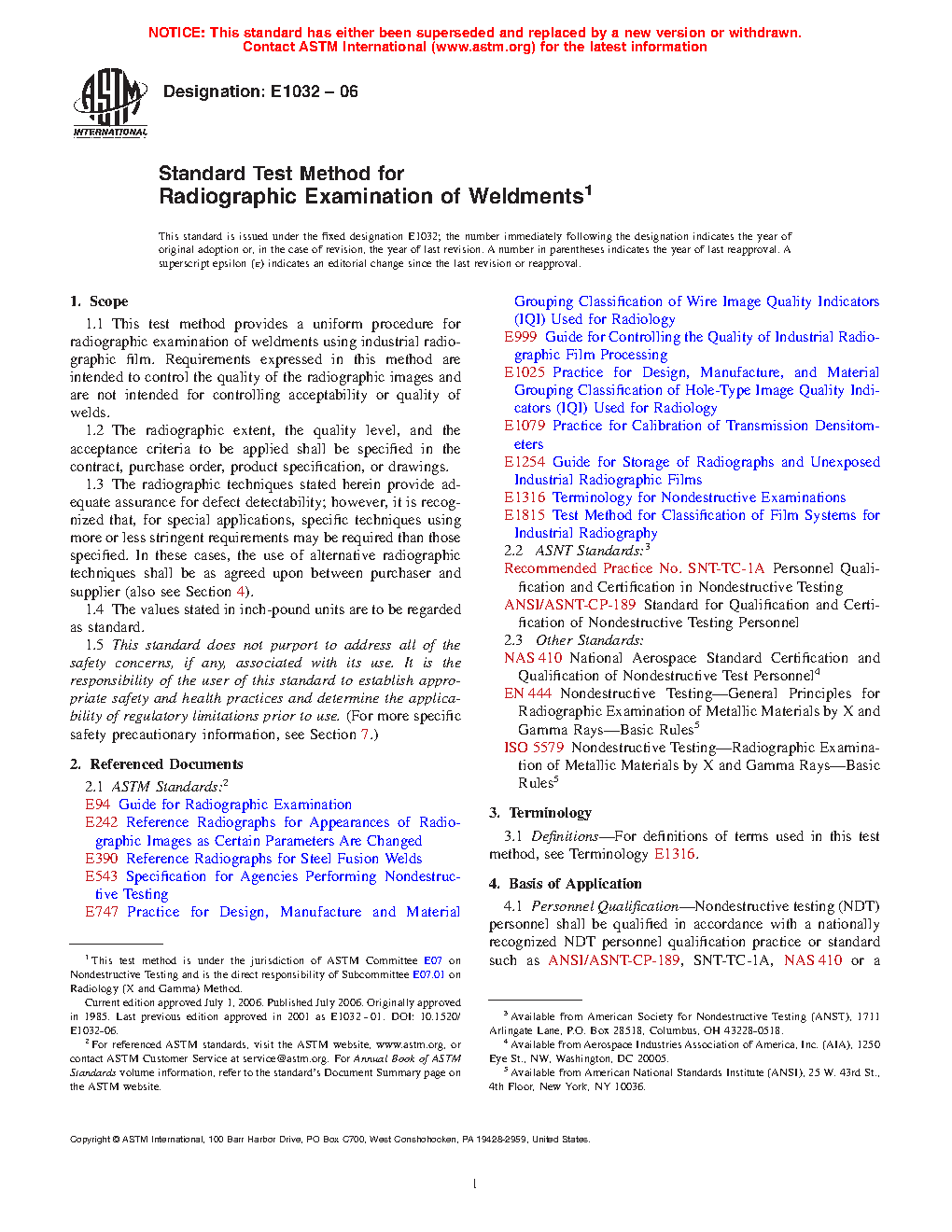 1.3 The radiographic techniques stated herein provide adequate assurance for defect detectability; however, it is recognized that, for special applications, specific techniques using more or less stringent requirements may be required than those specified. In these cases, the use of alternative radiographic techniques shall be as agreed upon between purchaser and supplier (also see Section 4).