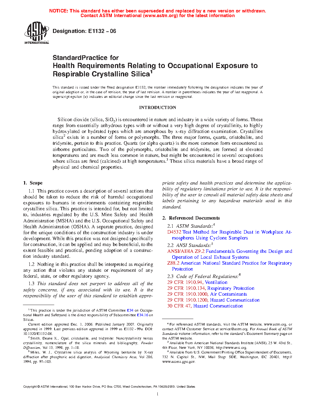 1.1 This practice is designed to help protect the health of workers where there may be occupational exposure to quartz dust.