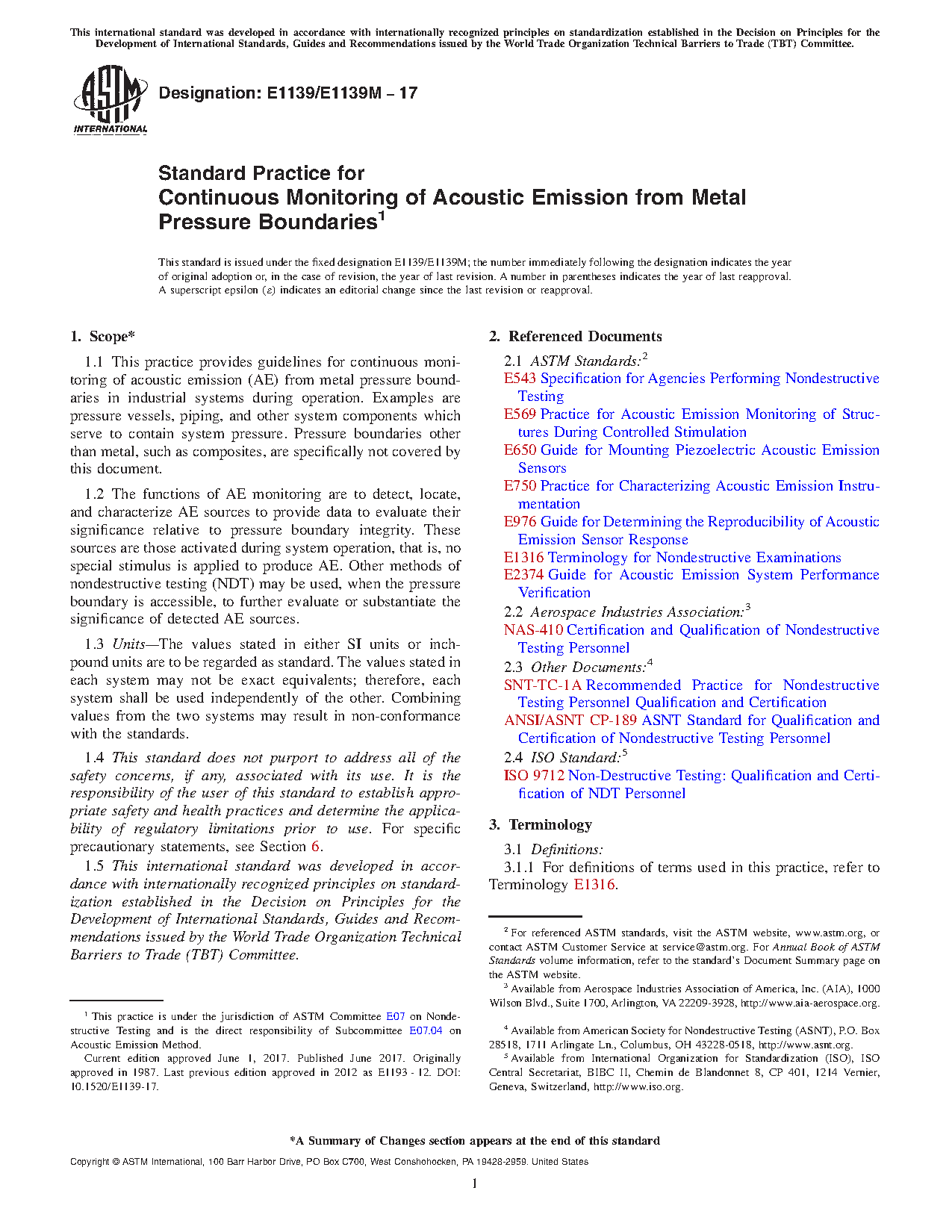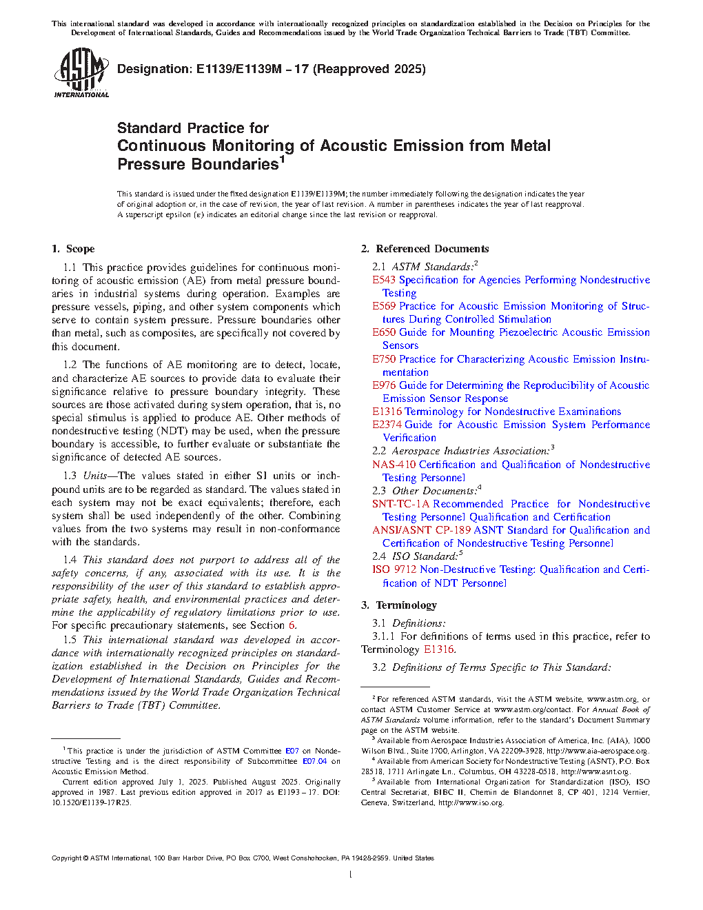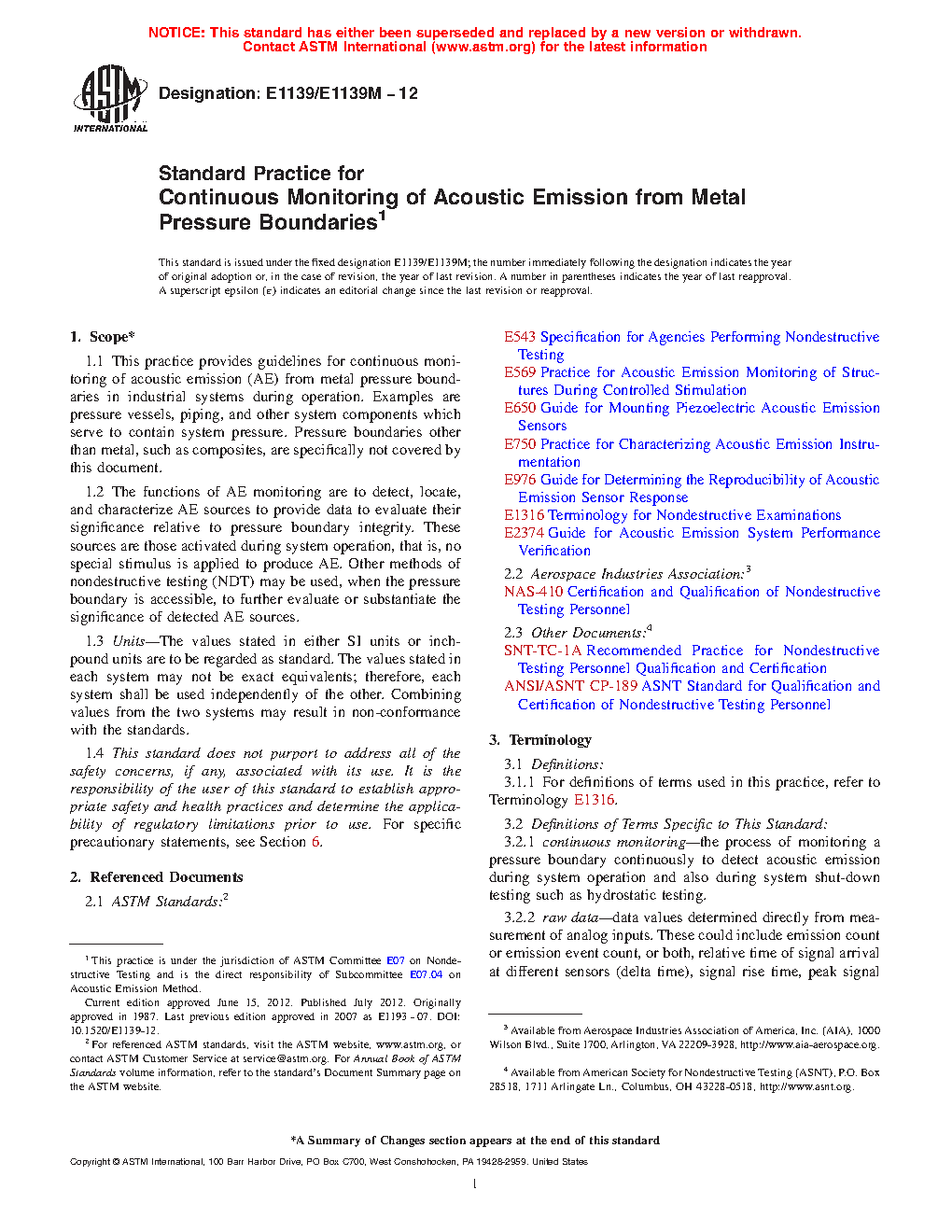 1.2 The functions of AE monitoring are to detect, locate, and characterize AE sources to provide data to evaluate their significance relative to pressure boundary integrity. These sources are those activated during system operation, that is, no special stimulus is applied to produce AE. Other methods of nondestructive testing (NDT) may be used, when the pressure boundary is accessible, to further evaluate or substantiate the significance of detected AE sources.