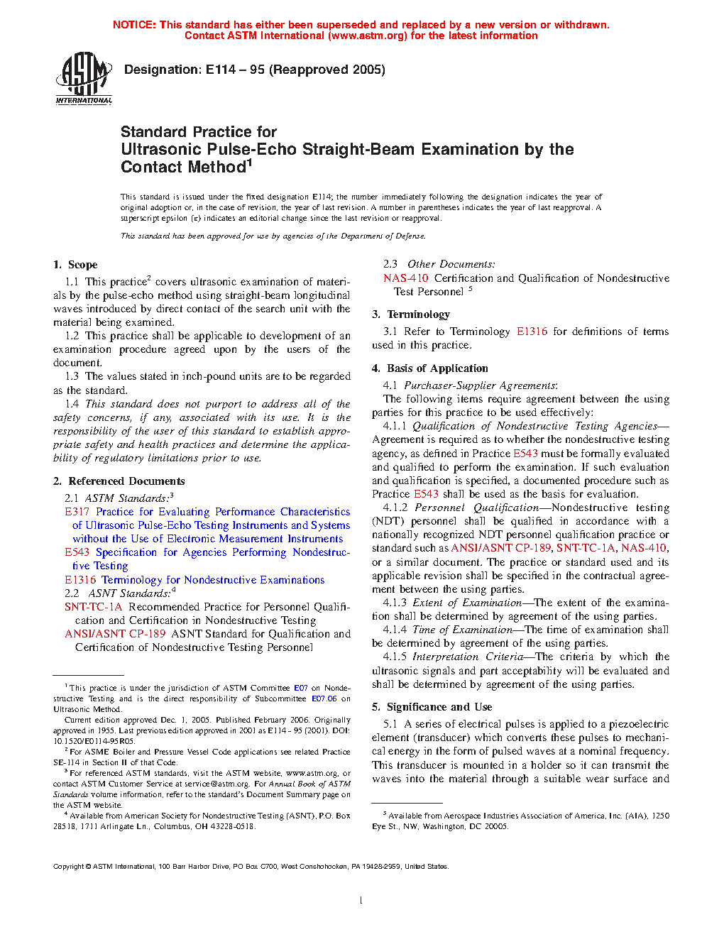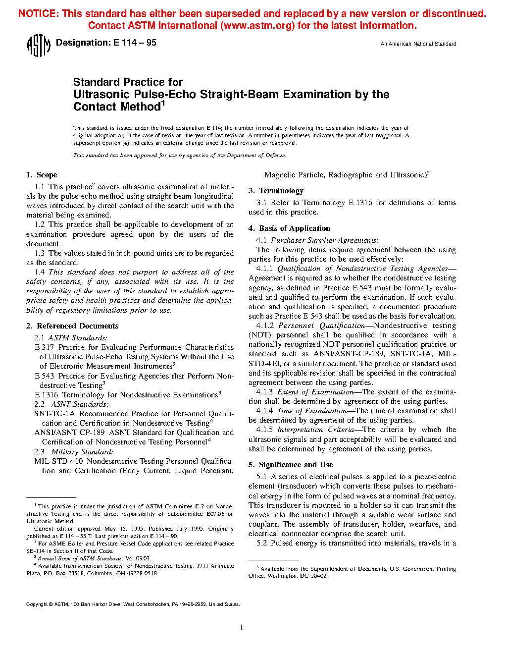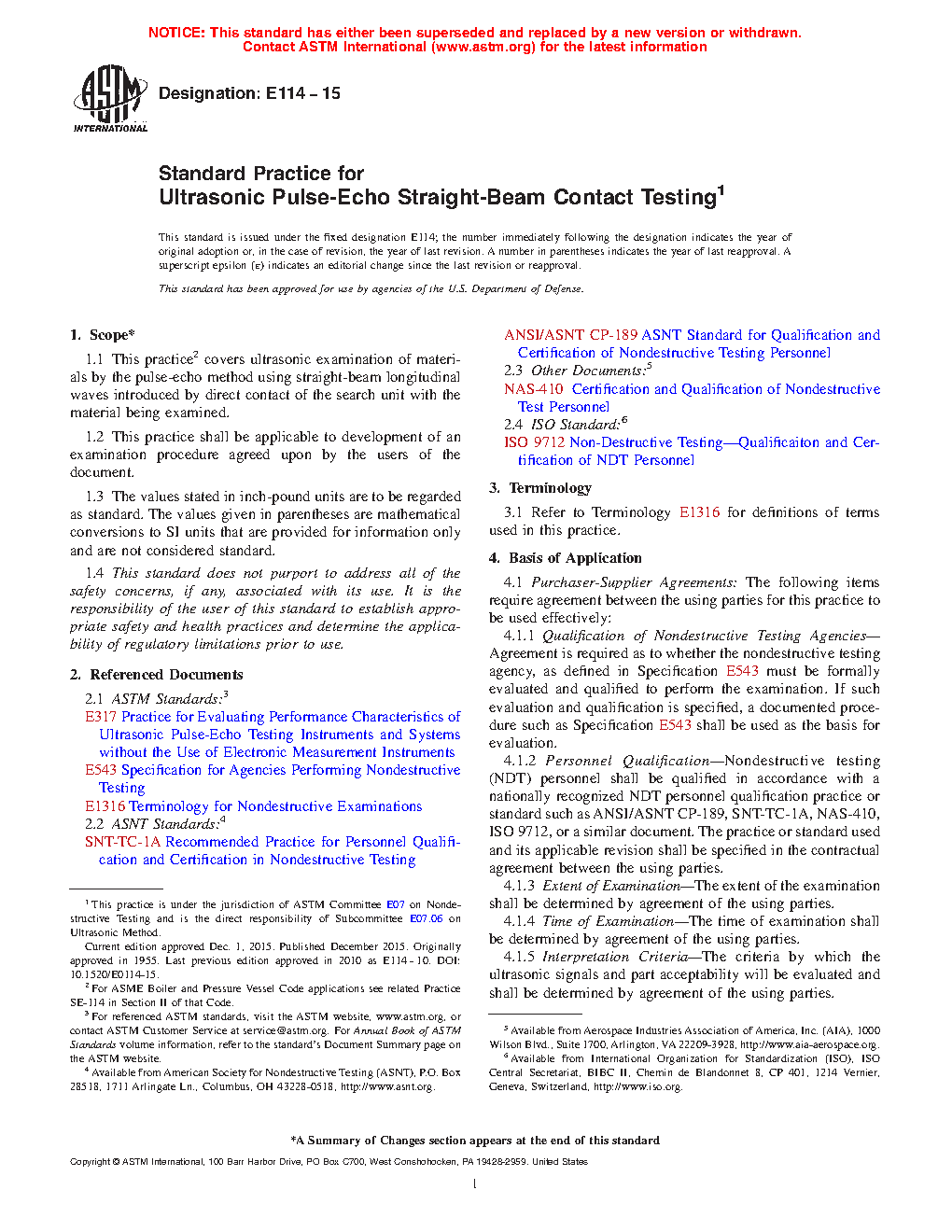 5.2 Although not all requirements of this practice can be applied universally to all inspection situations and materials, it does provide the basis for establishing contractual criteria between suppliers and purchasers of materials for performing contact longitudinal wave pulse-echo examination and may be used as a guide for writing detailed procedures for particular applications.