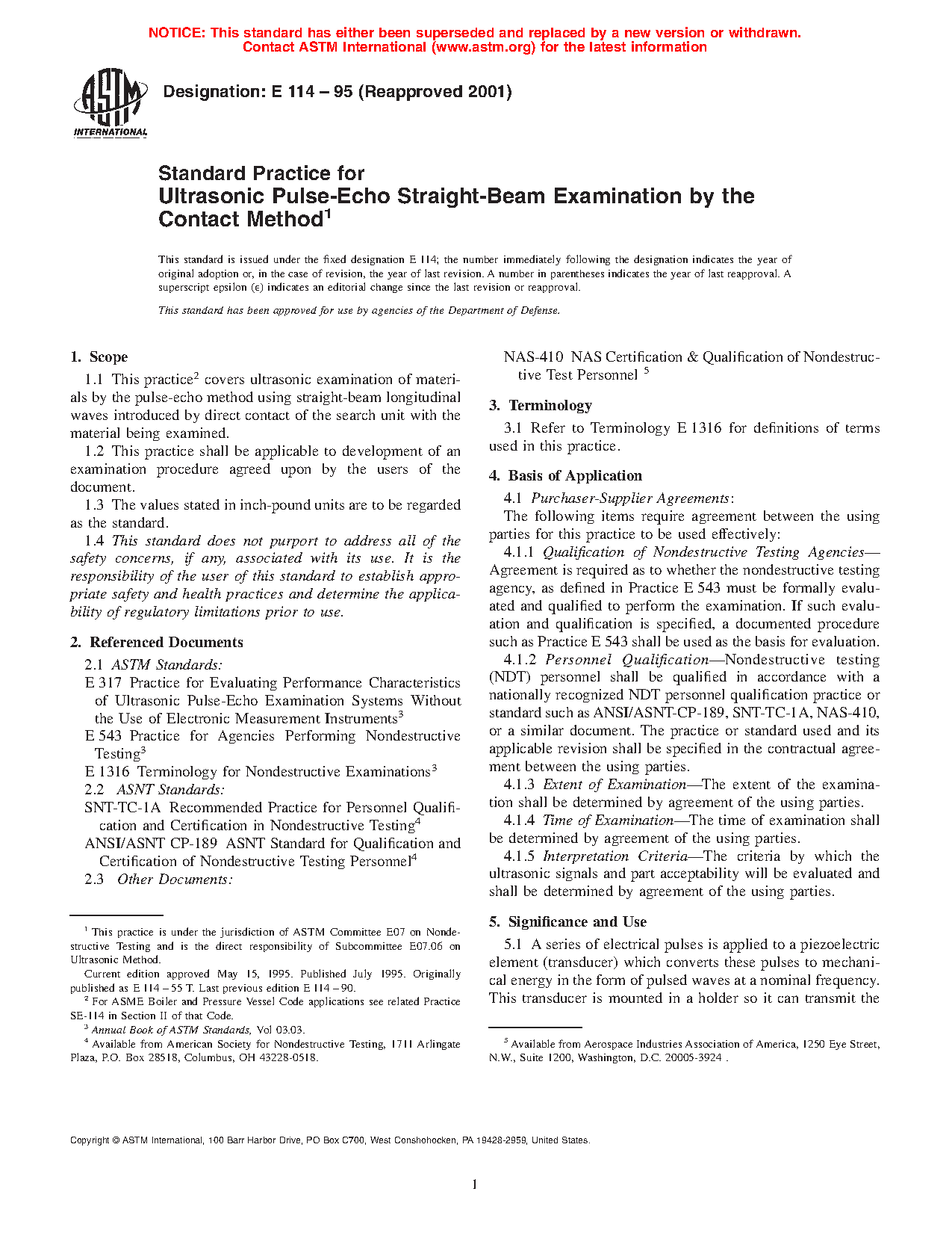 1.1 This practice2 covers ultrasonic examination of materials using the conventional pulse-echo method using straight-beam longitudinal waves introduced by direct contact of the search unit with the material being examined.