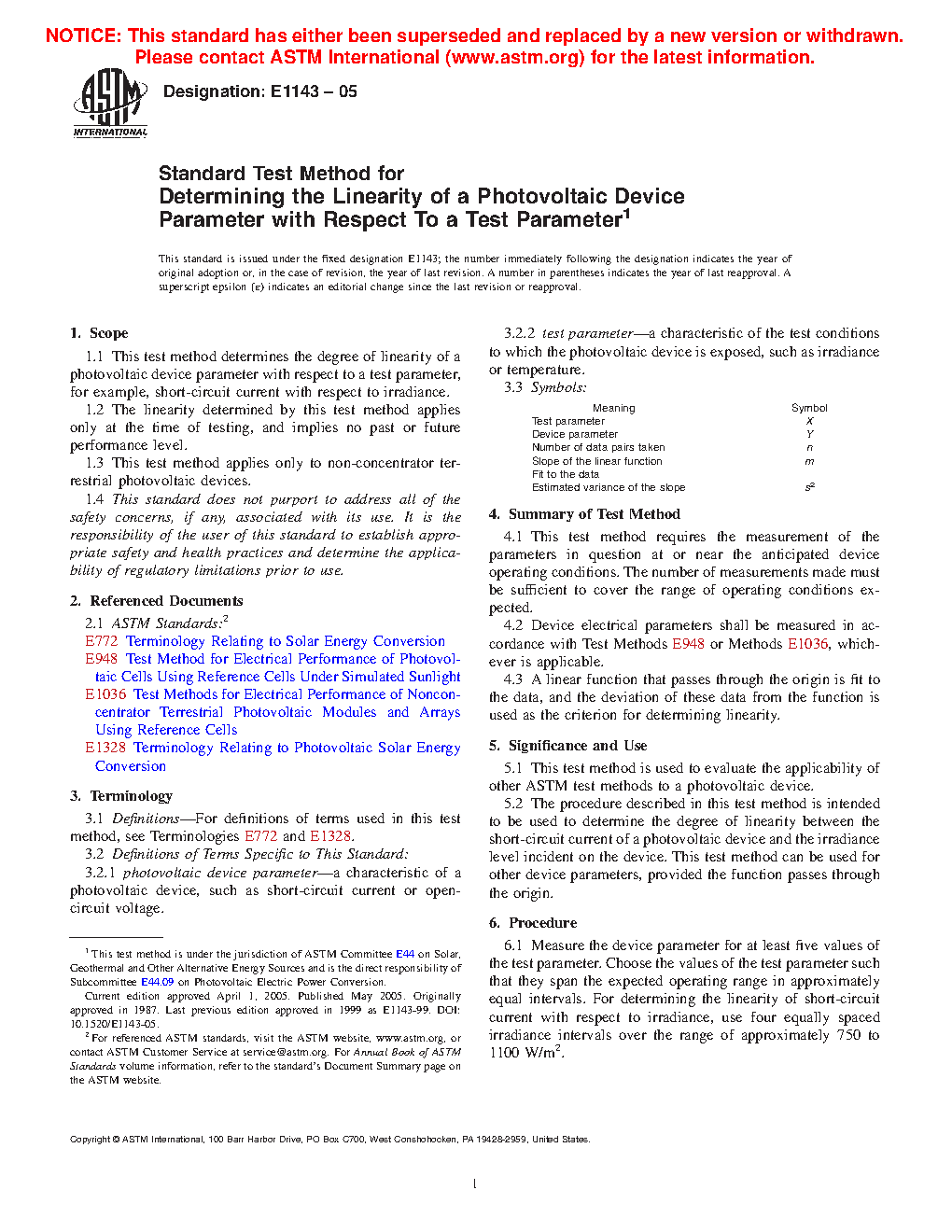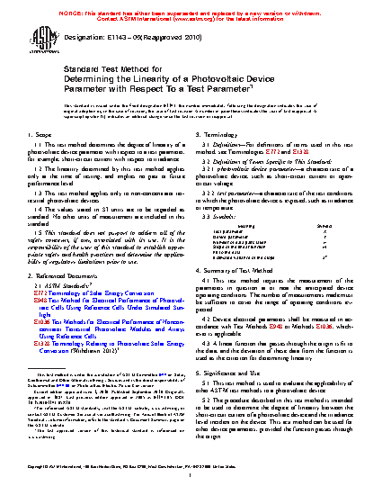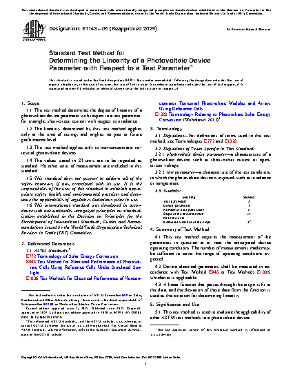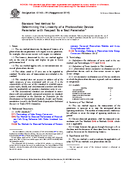 5.2 The procedure described in this test method is intended to be used to determine the degree of linearity between the short-circuit current of a photovoltaic device and the irradiance level incident on the device. This test method can be used for other device parameters, provided the function passes through the origin.
