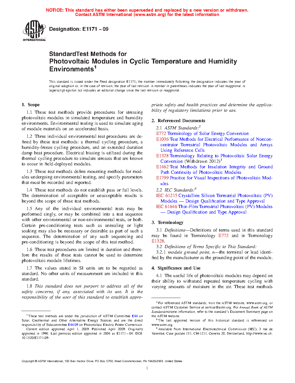 1.6 These test procedures are limited in duration and therefore the results of these tests cannot be used to determine photovoltaic module lifetimes.