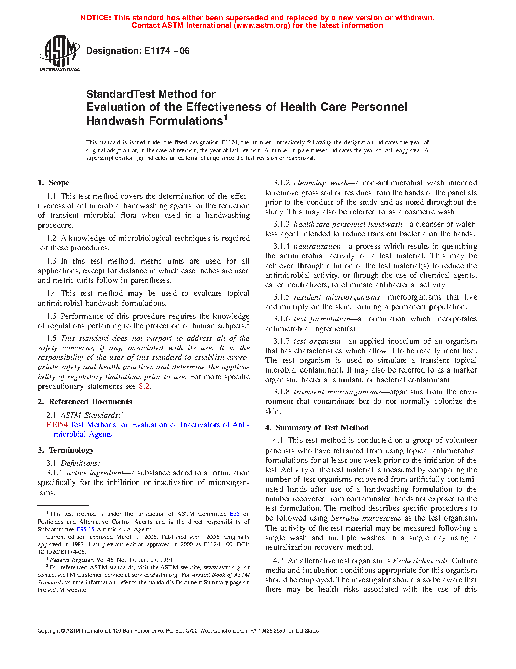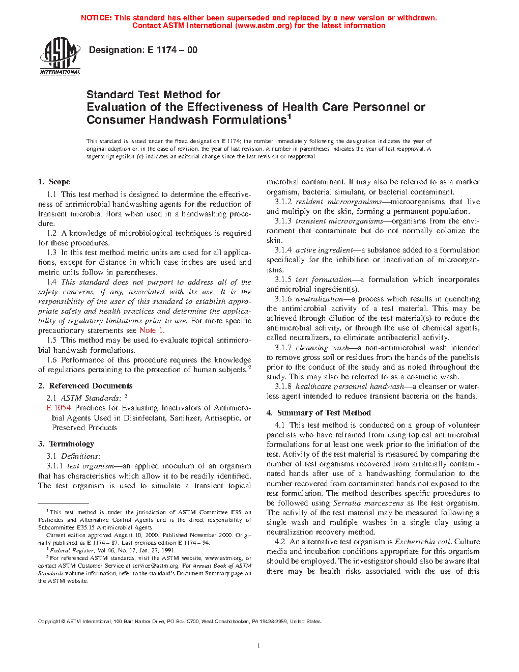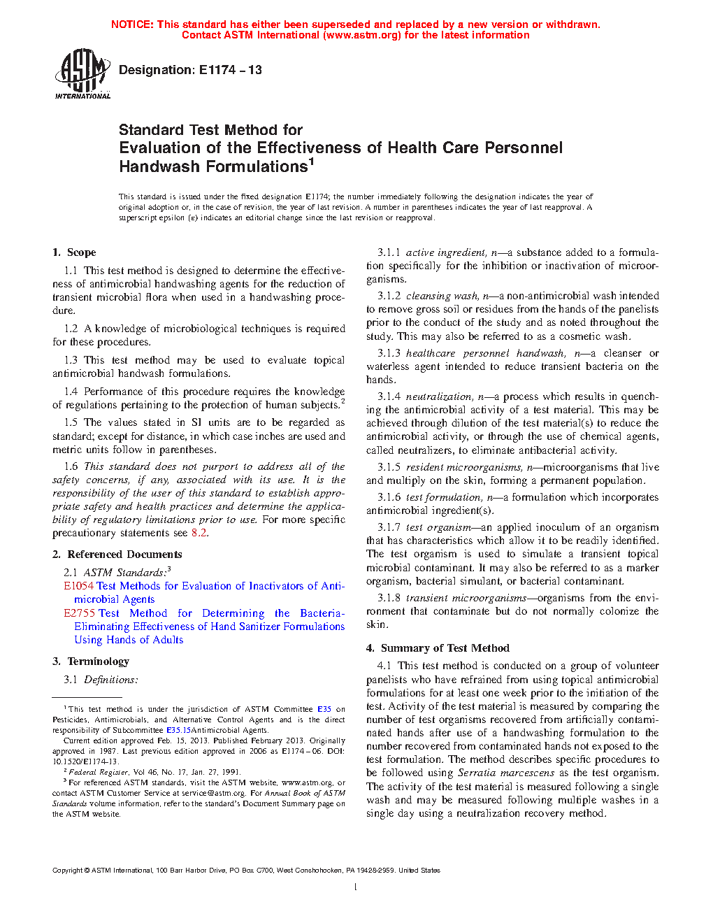 1.1 This test method is designed to determine the effectiveness of antimicrobial handwashing agents for the reduction of transient microbial skin flora when used in a handwashing procedure.2