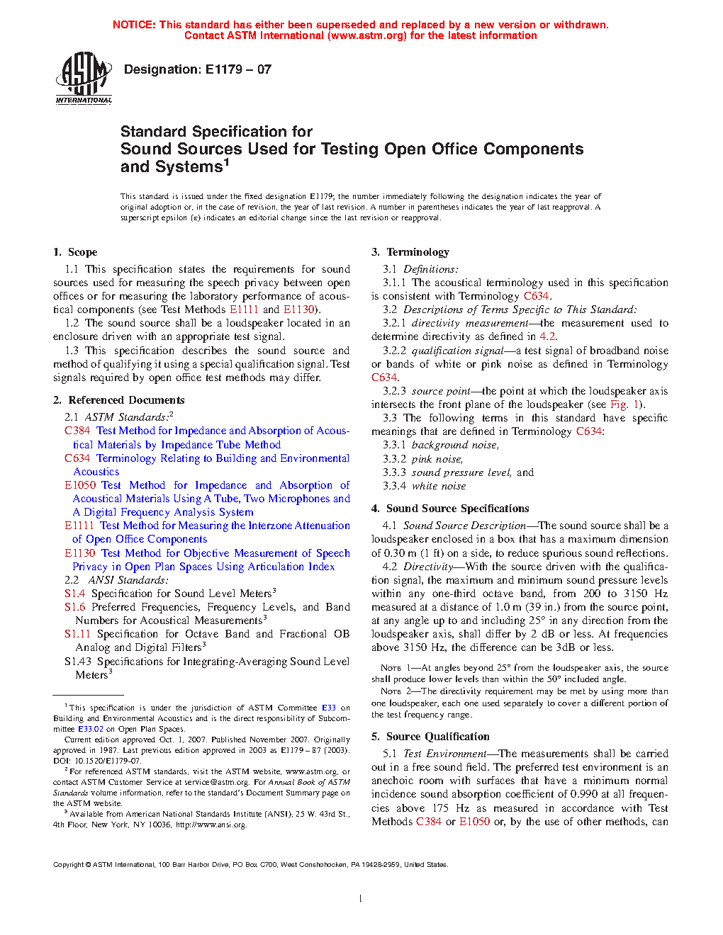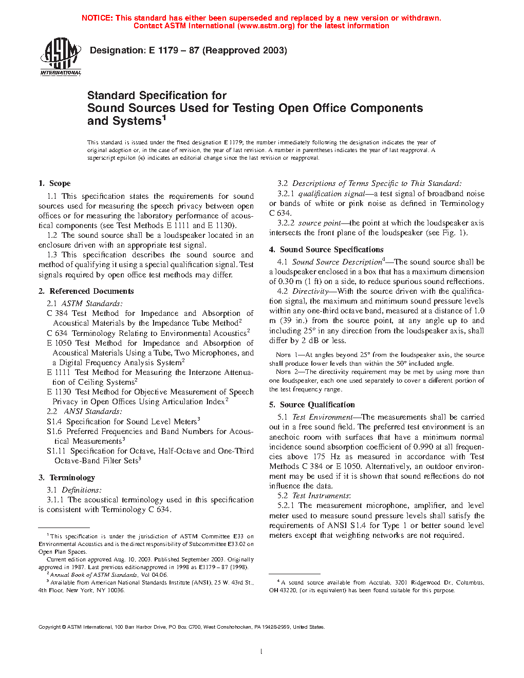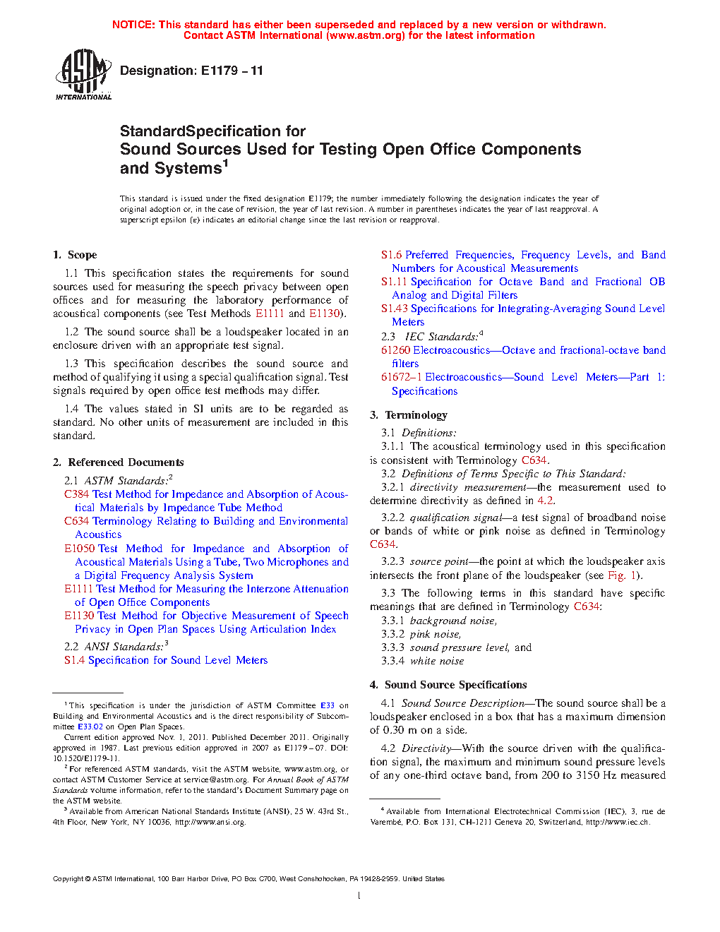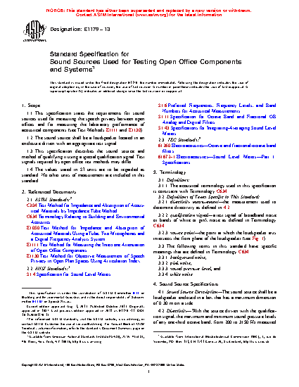 1.3 This specification describes the sound source and method of qualifying it using a special qualification signal. Test signals required by open office test methods may differ.