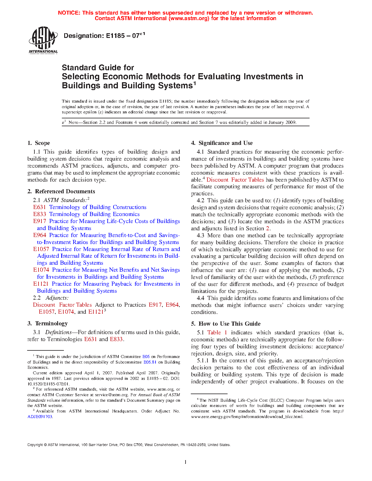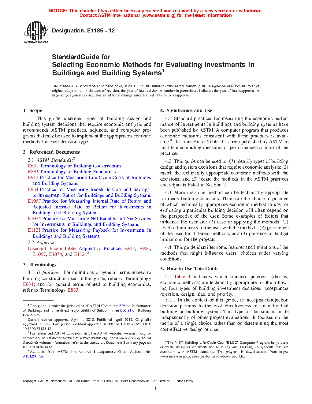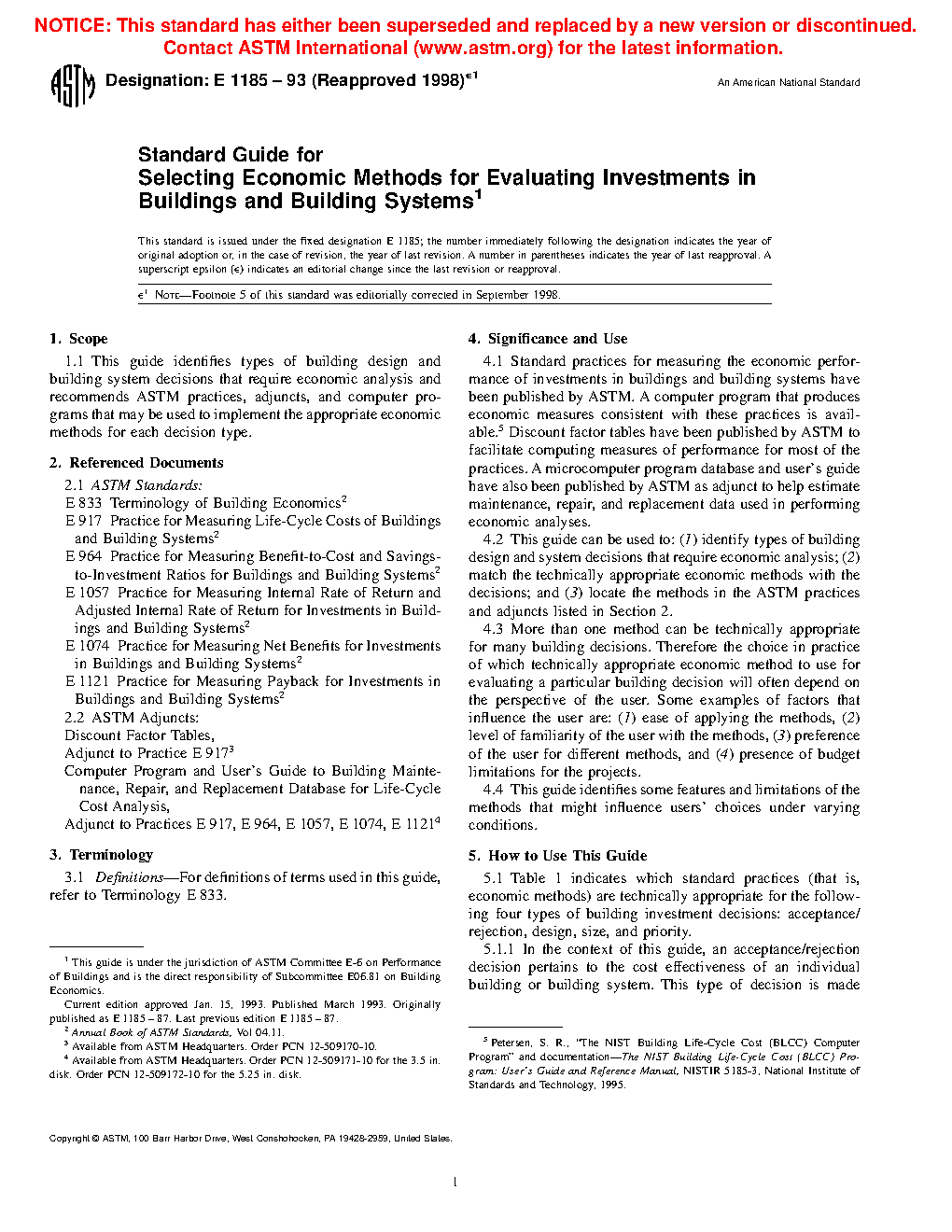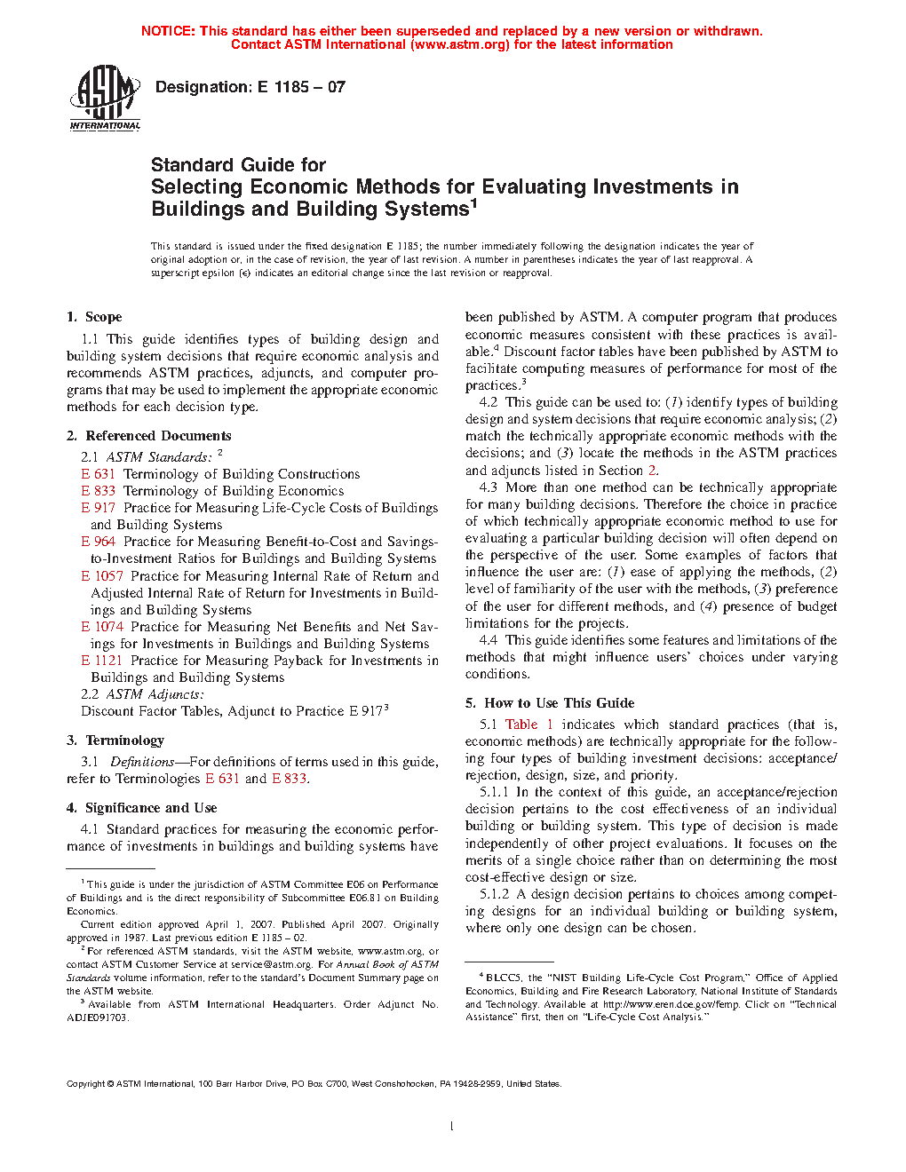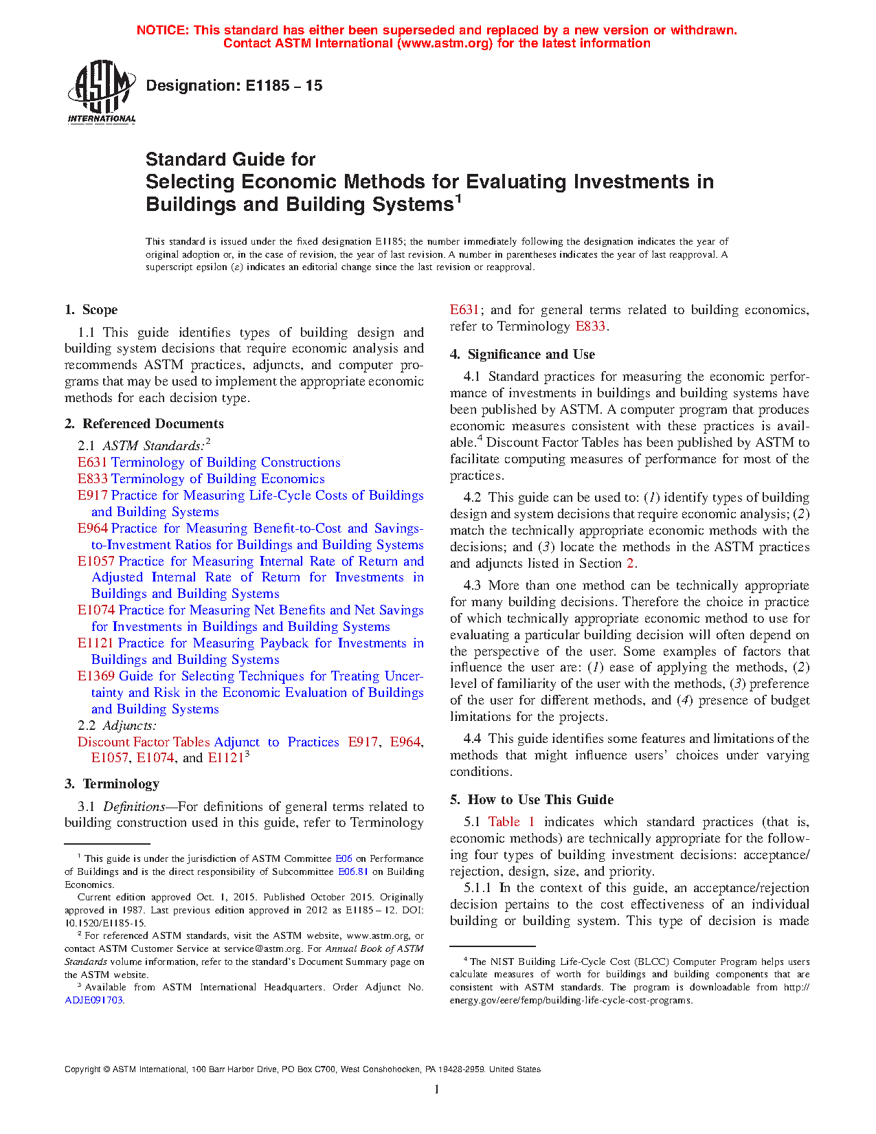 1.1 This guide identifies types of building design and building system decisions that require economic analysis and recommends ASTM practices, adjuncts, and computer programs that may be used to implement the appropriate economic methods for each decision type.