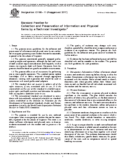 1.1 This practice covers guidelines for the collection and preservation of information and physical items by any technical investigator pertaining to an incident that can be reasonably expected to be the subject of litigation.