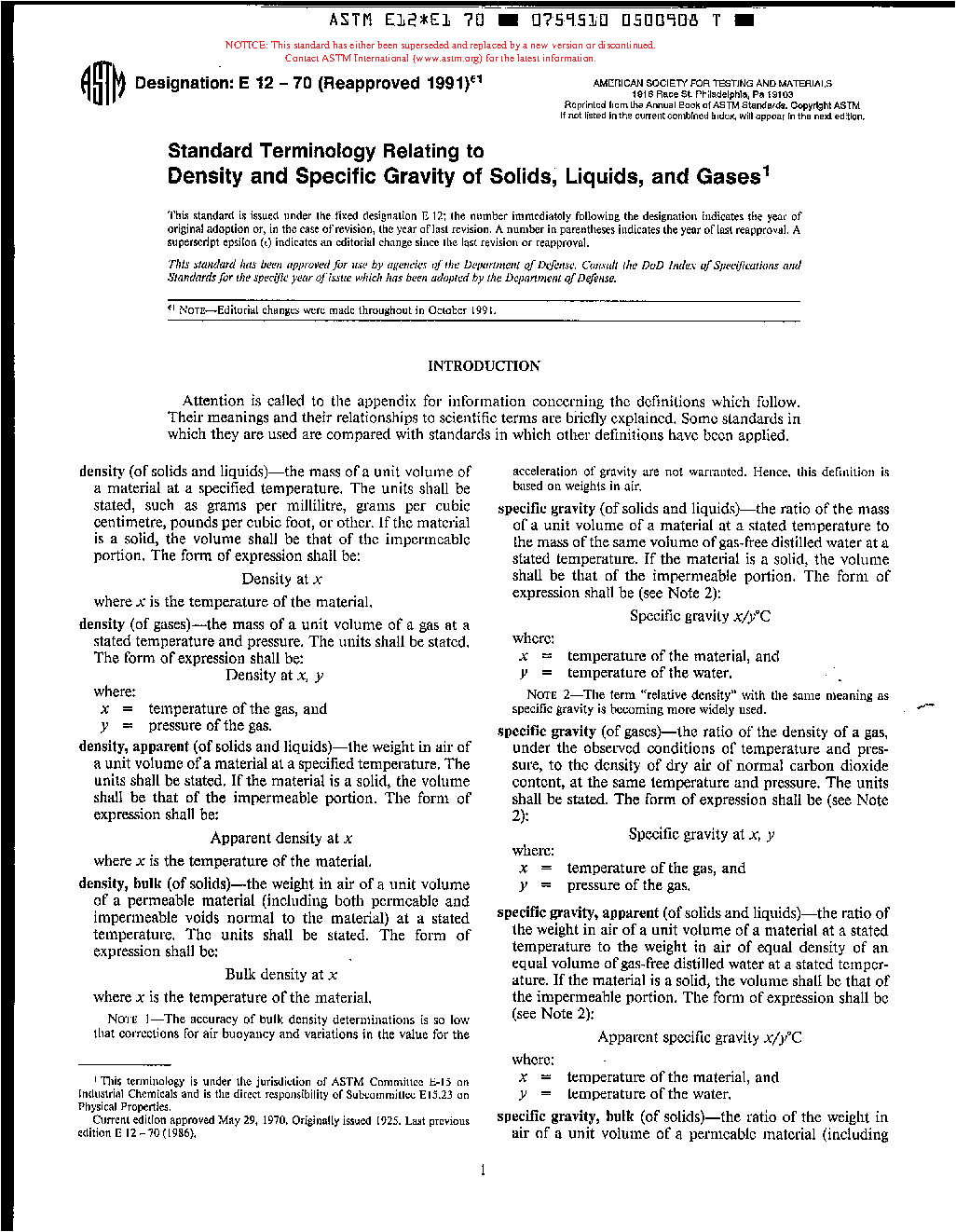 Terminology Relating to Density and Specific Gravity of Solids, Liquids, and Gases (Withdrawn 1996)