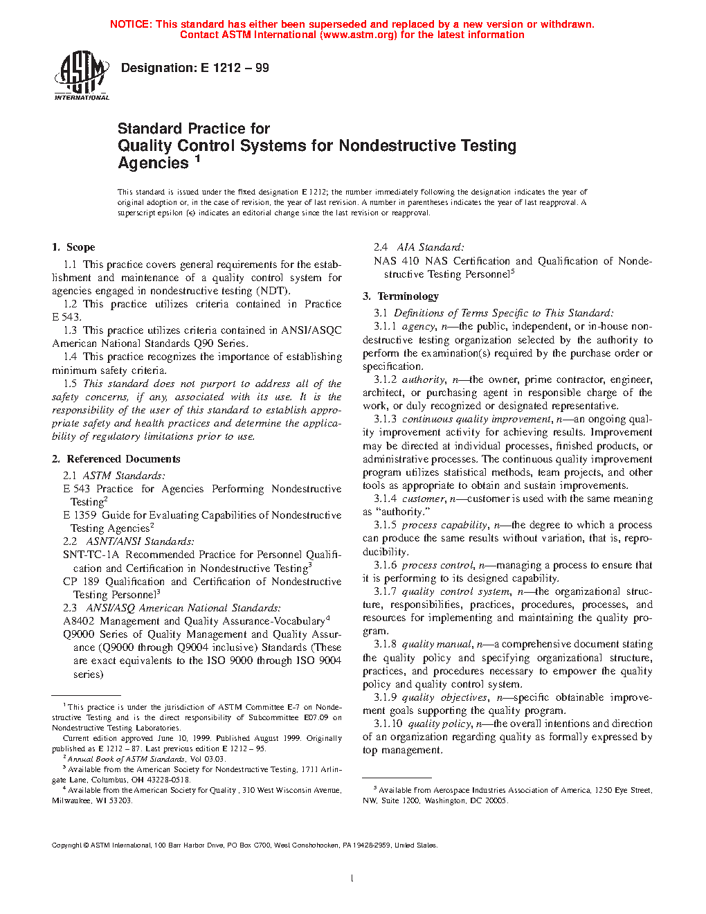 This practice covers procedures for establishing and maintaining a quality system for nondestructive testing agencies.