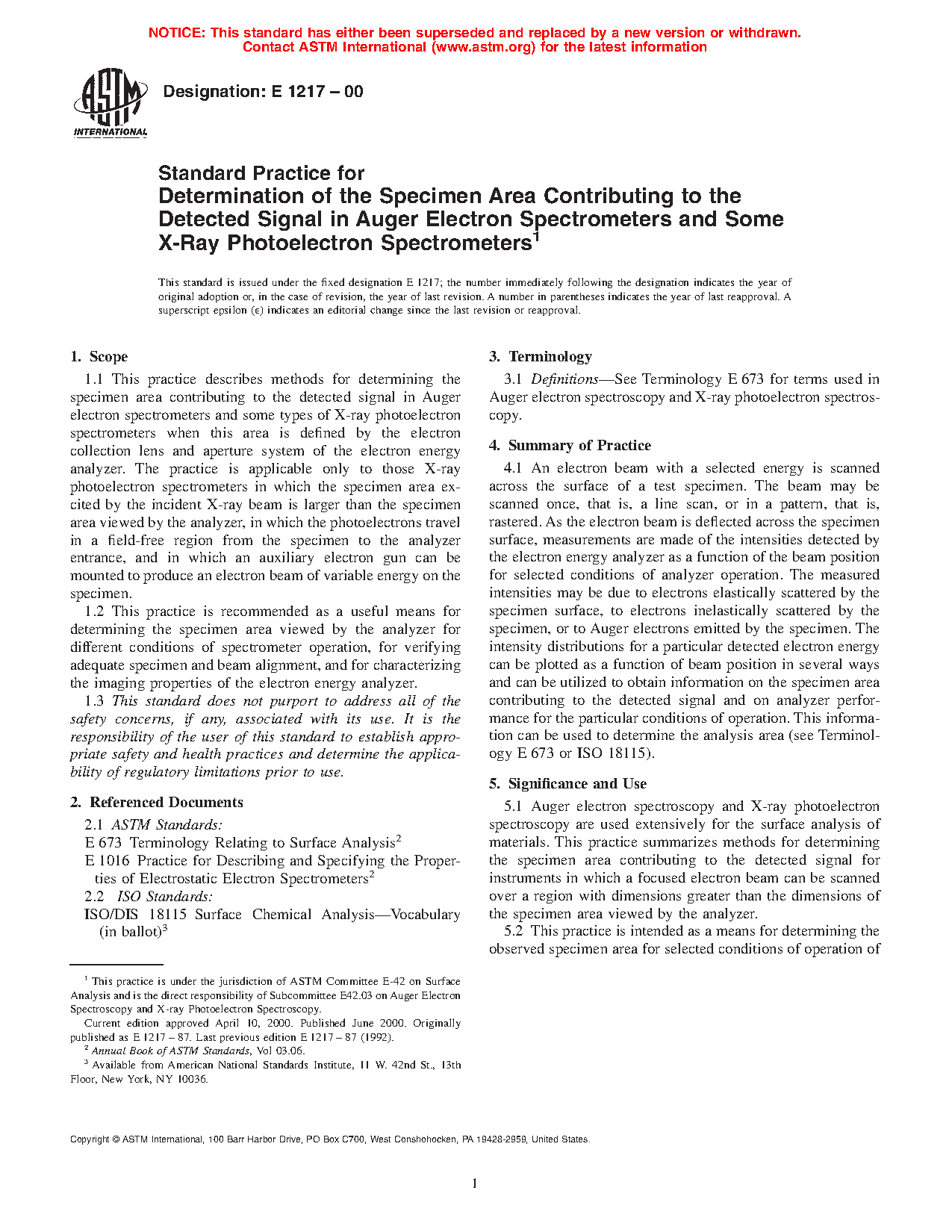 1.2 This practice is recommended as a useful means for determining the specimen area viewed by the analyzer for different conditions of spectrometer operation, for verifying adequate specimen and beam alignment, and for characterizing the imaging properties of the electron energy analyzer.