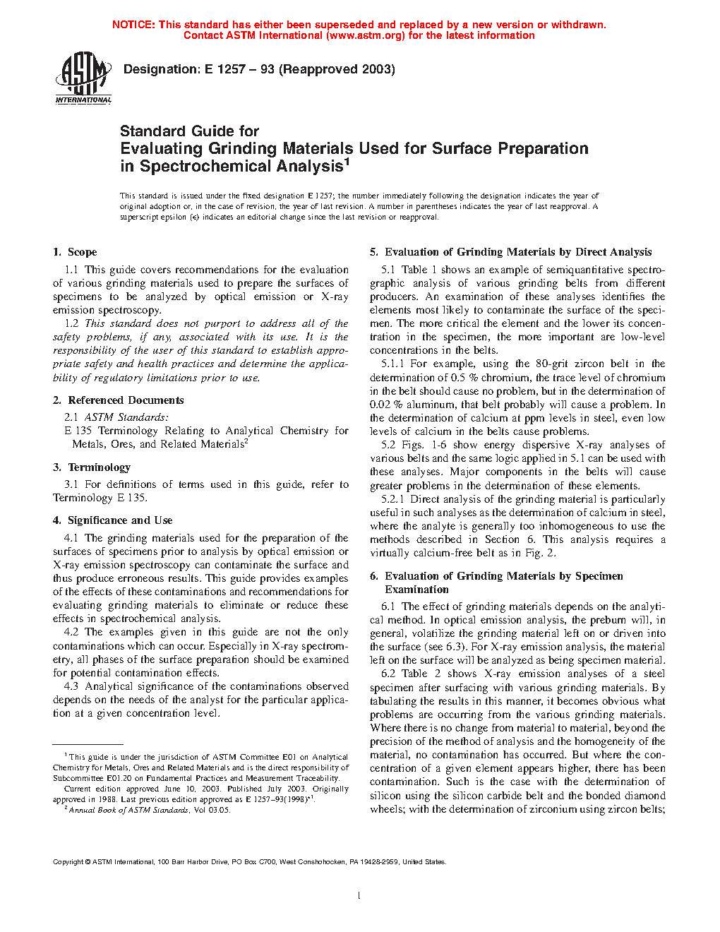 Standard Guide for Evaluating Grinding Materials Used for Surface Preparation in Spectrochemical Analysis