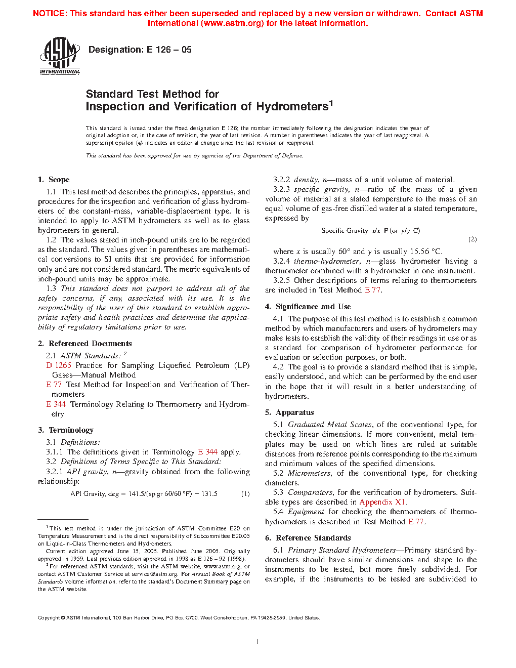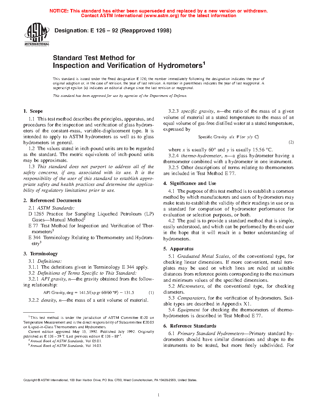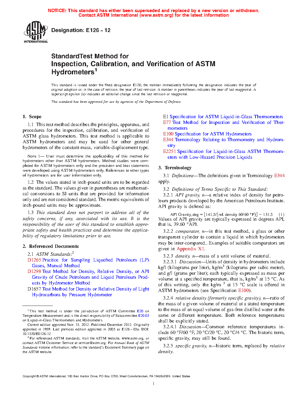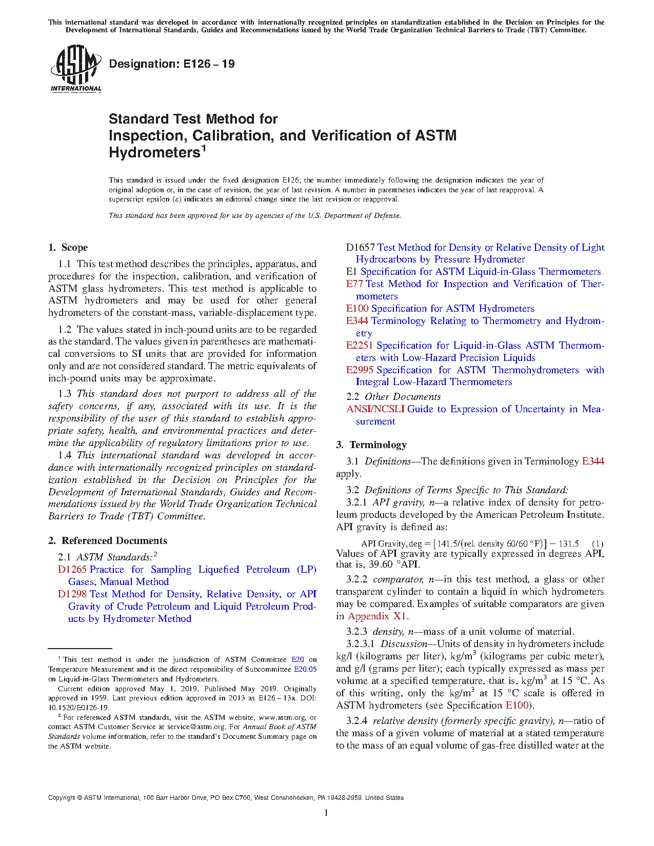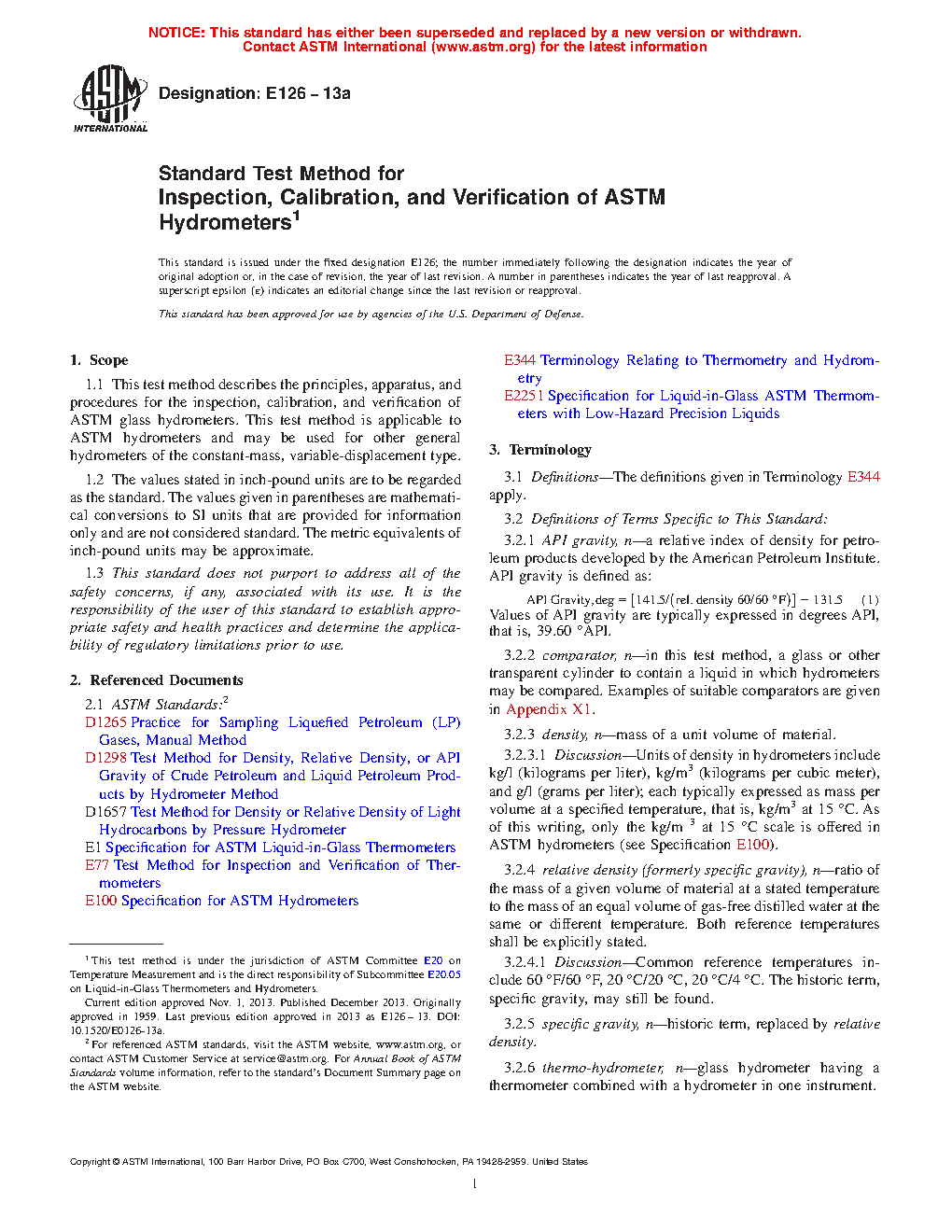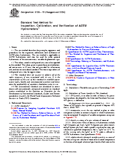 1.1 This test method describes the principles, apparatus, and procedures for the inspection and verification of glass hydrometers of the constant-mass, variable-displacement type. It is intended to apply to ASTM hydrometers as well as to glass hydrometers in general.