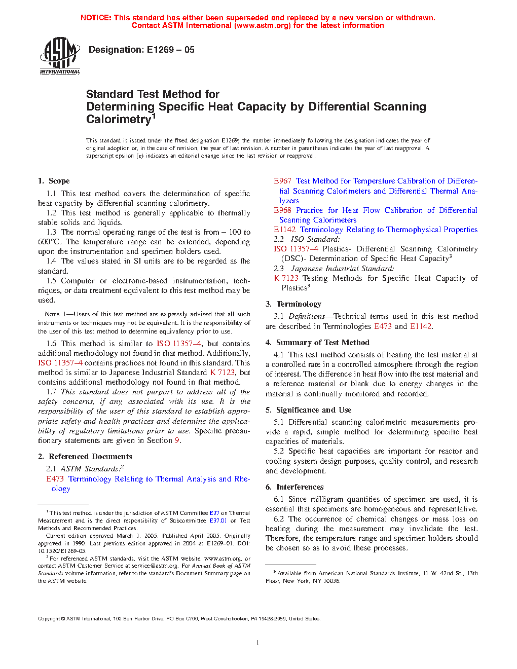 5.1 Differential scanning calorimetric measurements provide a rapid, simple method for determining specific heat capacities of materials.