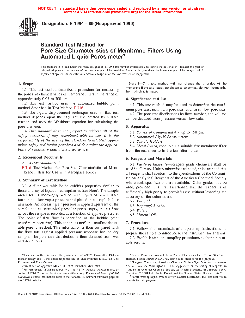 1.2 This test method uses the automated bubble point method described in ASTM Test Method F316.