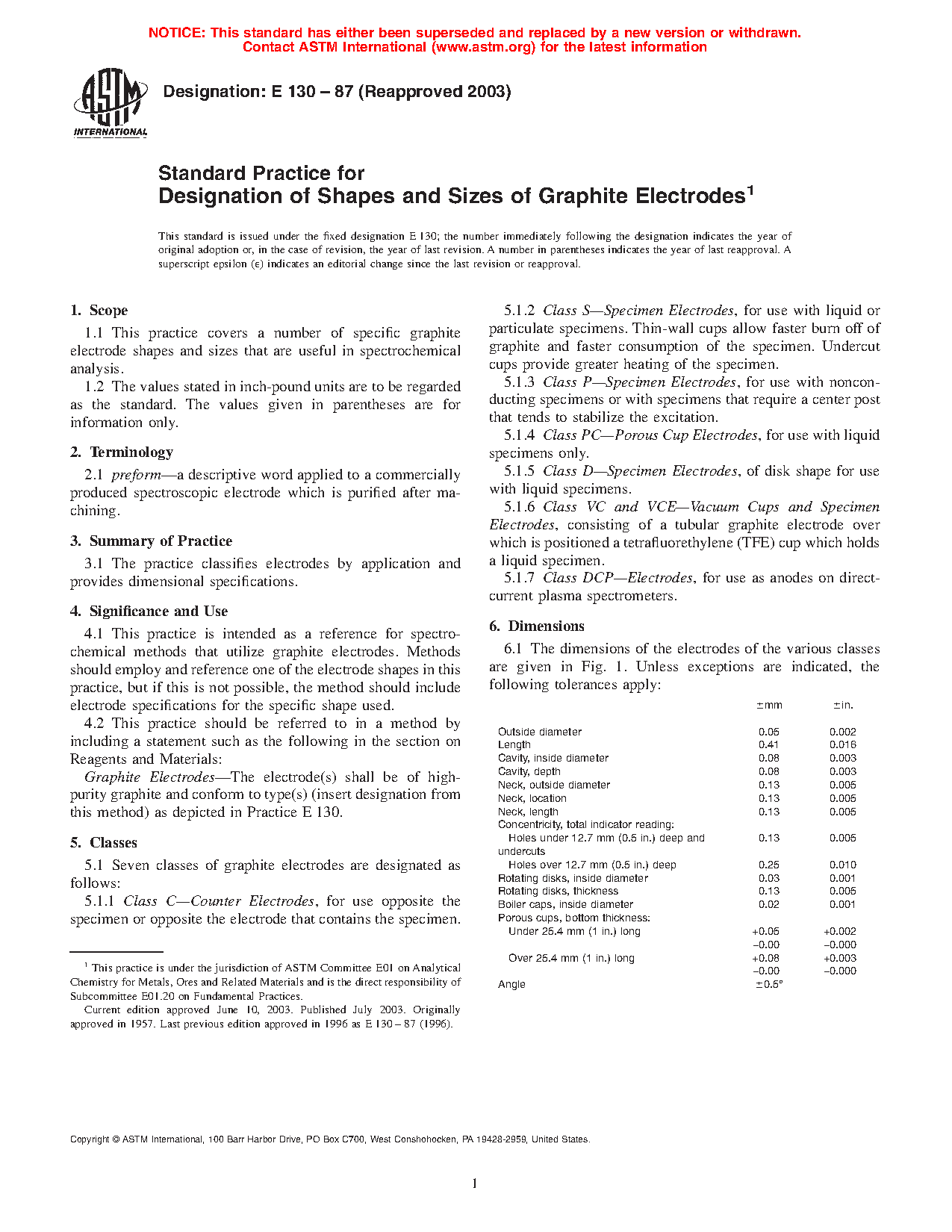 Graphite Electrodes—The electrode(s) shall be of high-purity graphite and conform to type(s) (insert designation from this method) as depicted in Practice E 130.