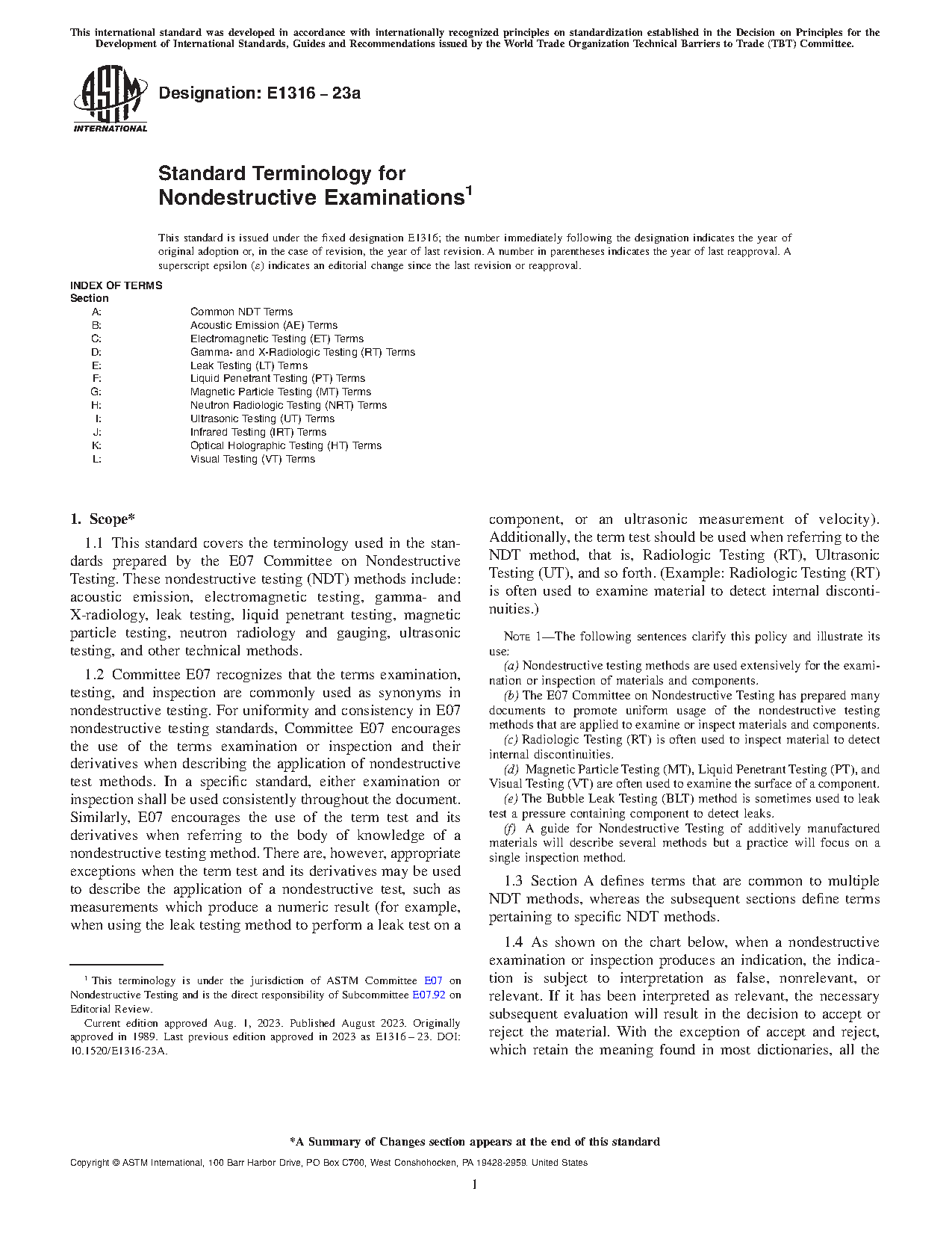 (b) The E07 Committee on Nondestructive Testing has prepared many documents to promote uniform usage of the nondestructive testing methods that are applied to examine or inspect materials and components.