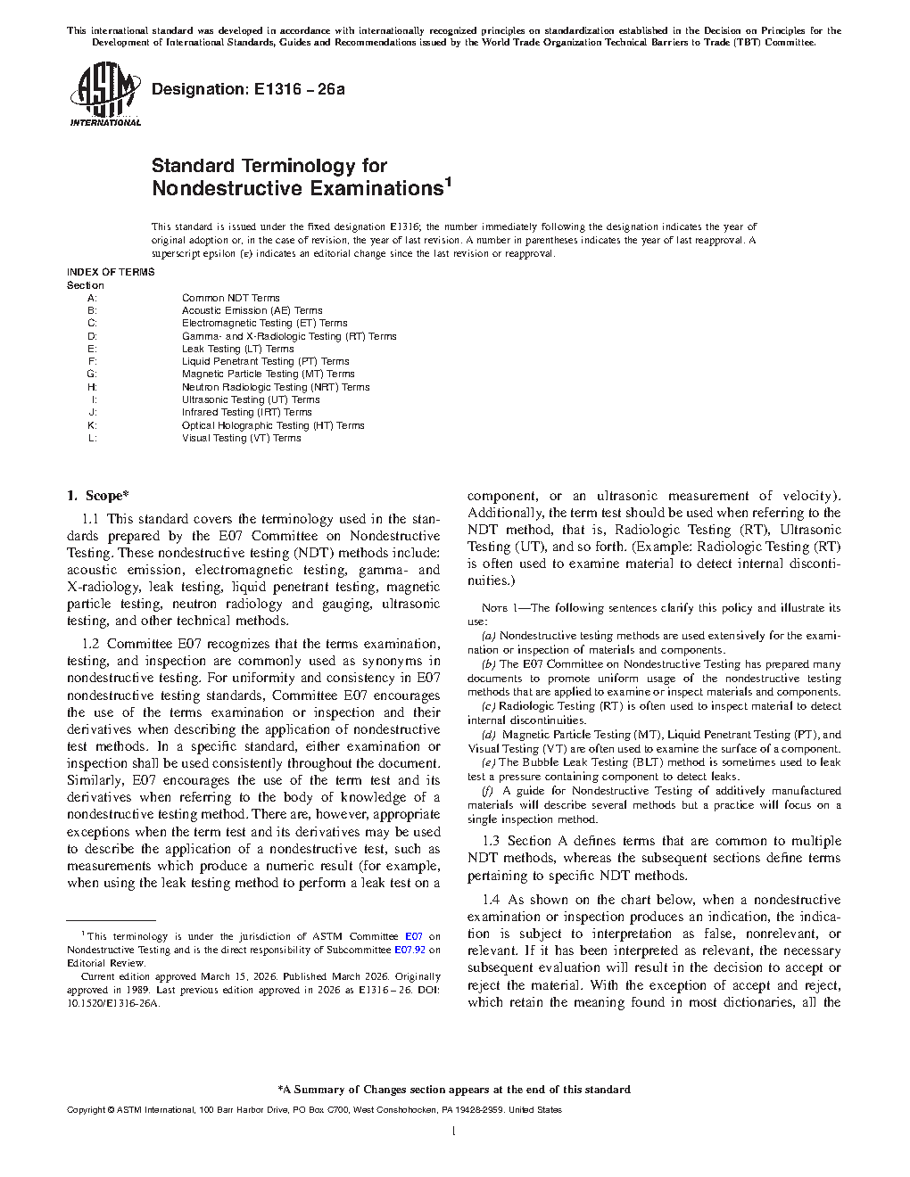 1.3 Section A defines terms that are common to multiple NDT methods, whereas the subsequent sections define terms pertaining to specific NDT methods.