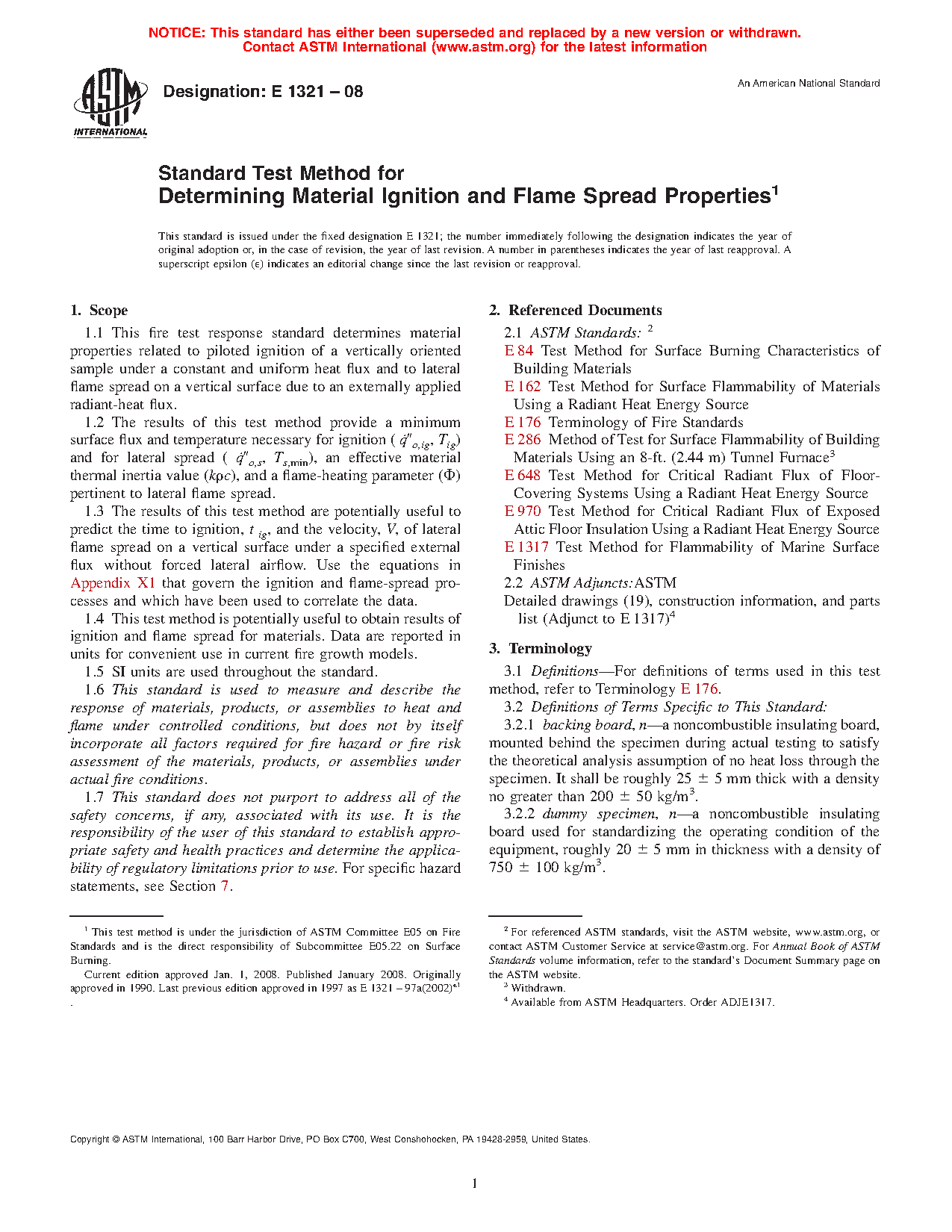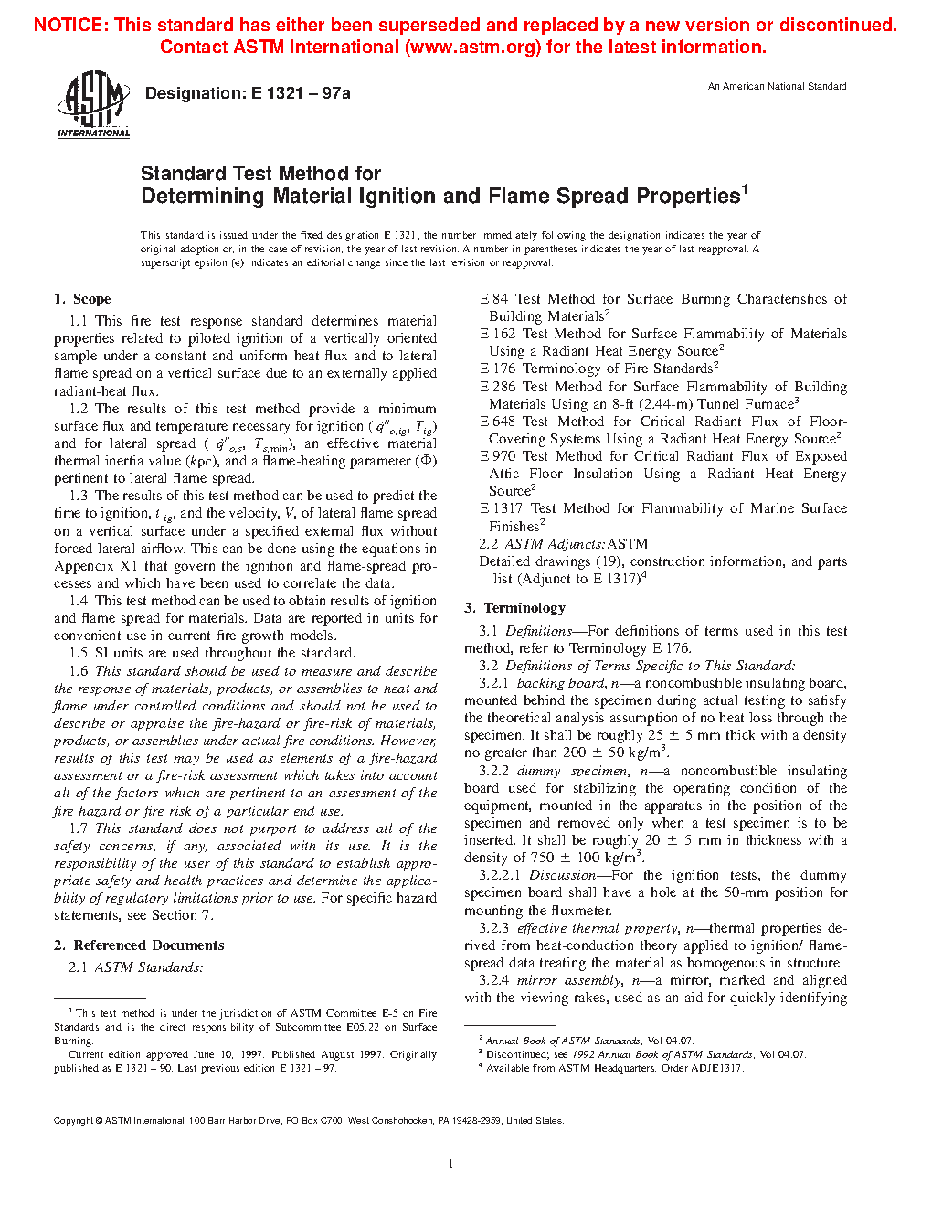 1.1 This fire test response standard determines material properties related to piloted ignition of a vertically oriented sample under a constant and uniform heat flux and to lateral flame spread on a vertical surface due to an externally applied radiant-heat flux.