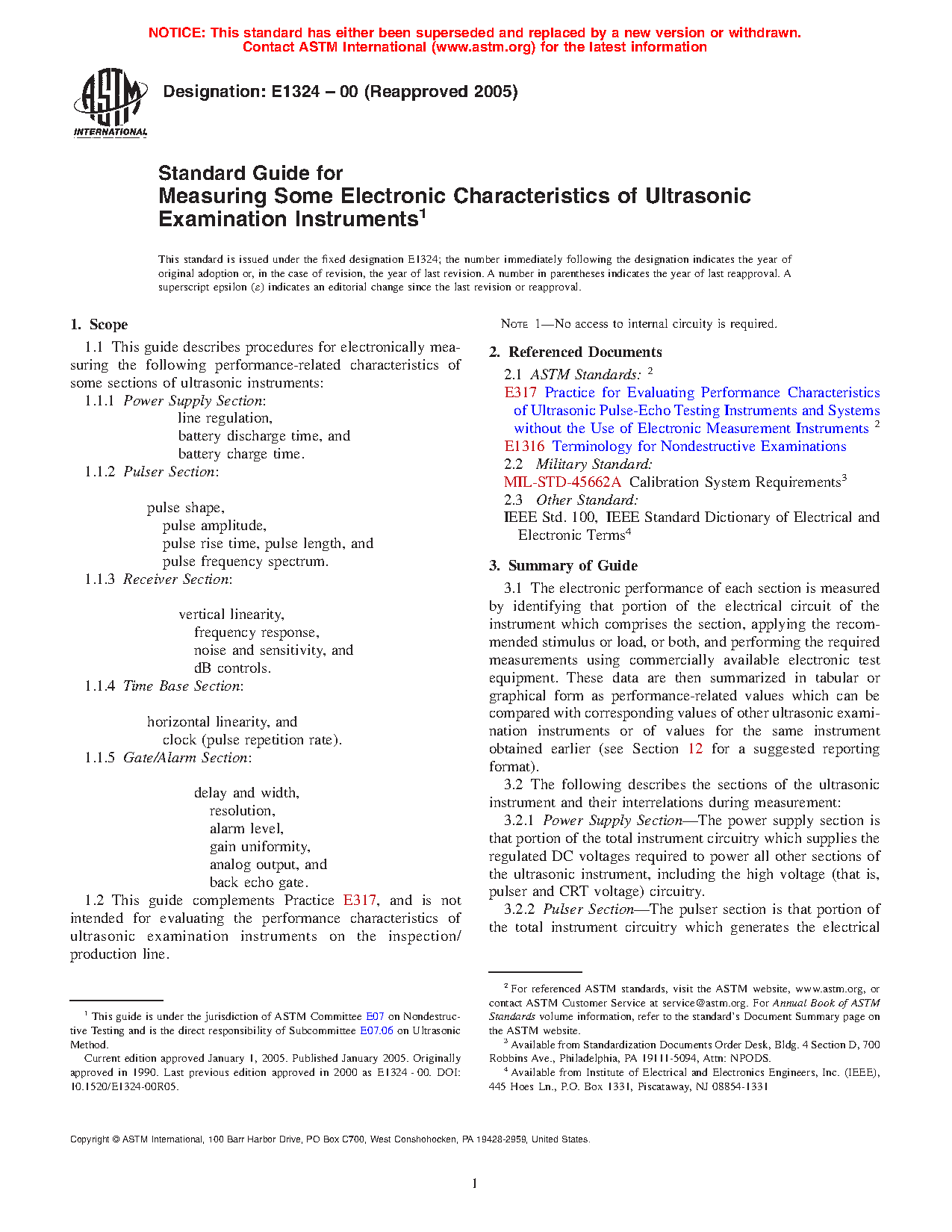 4.3 An ultrasonic testing instrument that cannot be completely described as a combination of the electronic sections discussed in this practice can be partially evaluated. Each portion of the ultrasonic testing instrument that is evaluated must fit the description for the corresponding section.