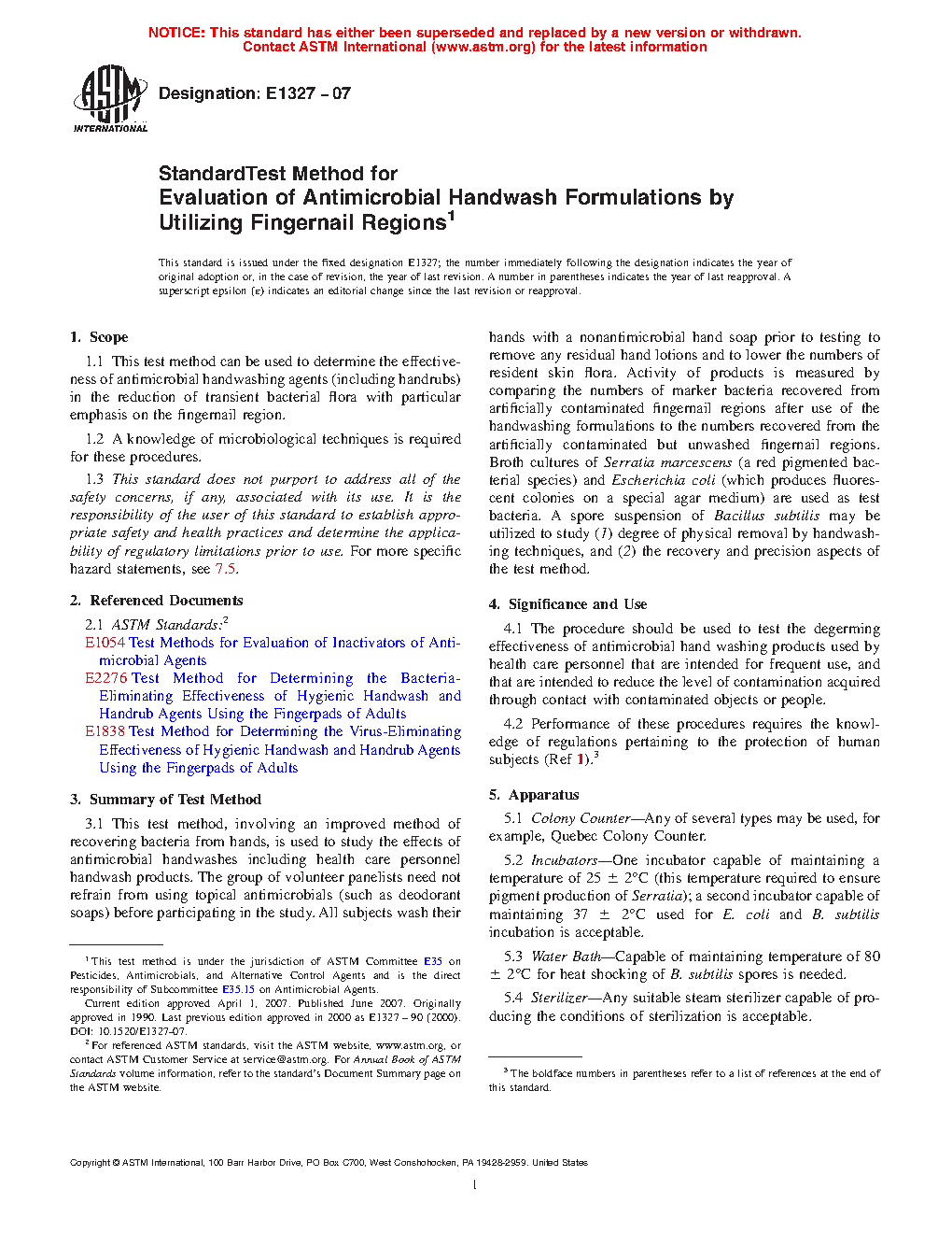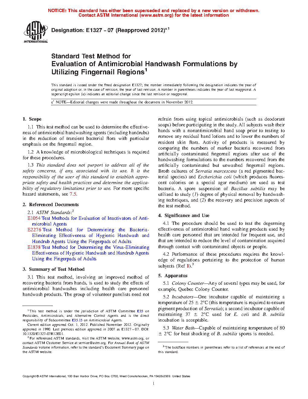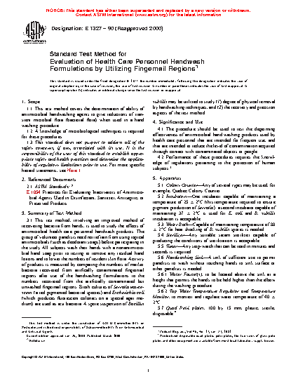 1.1 This test method can be used to determine the effectiveness of antimicrobial handwashing agents (including handrubs) in the reduction of transient bacterial flora with particular emphasis on the fingernail region.