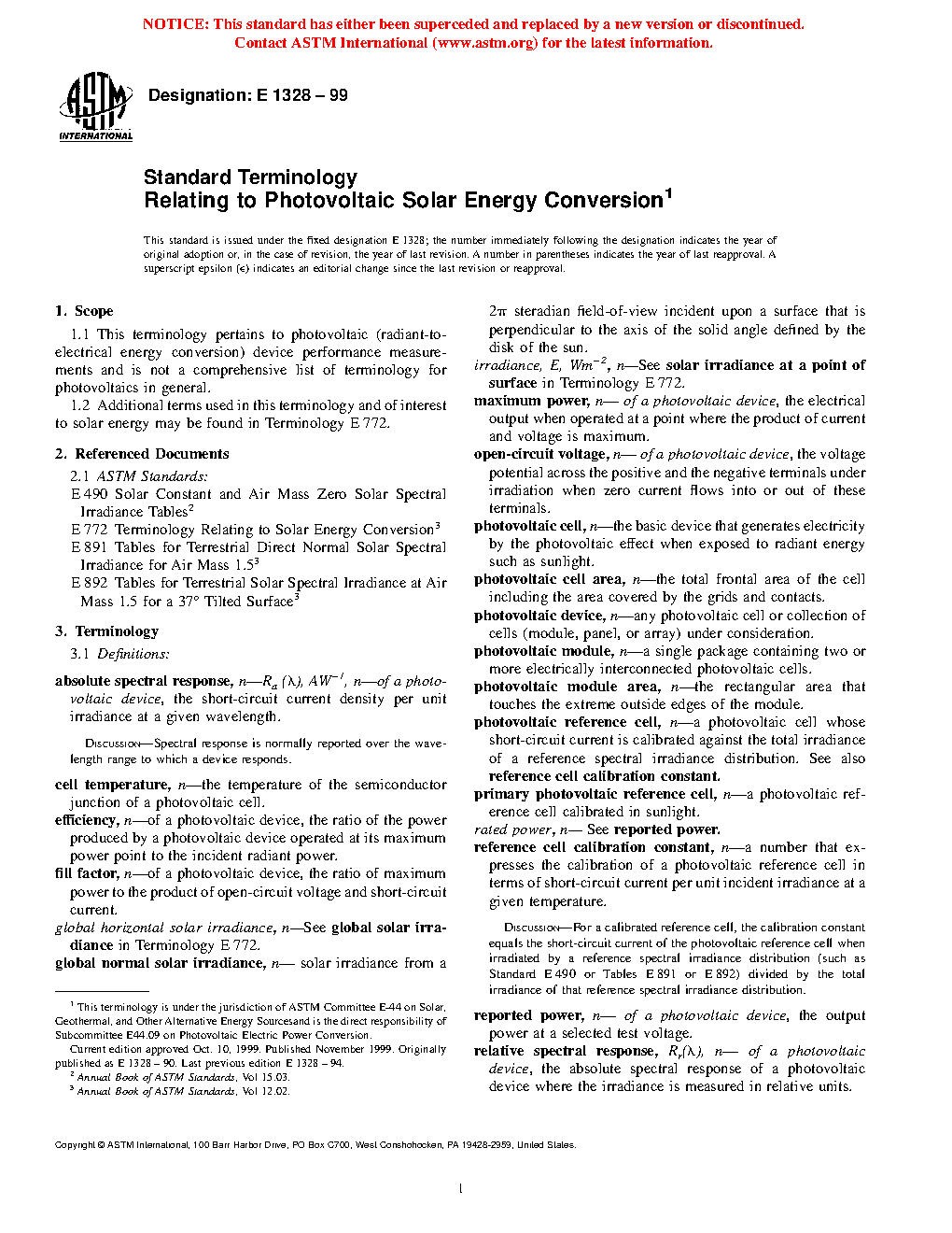 Standard Terminology Relating to Photovoltaic Solar Energy Conversion