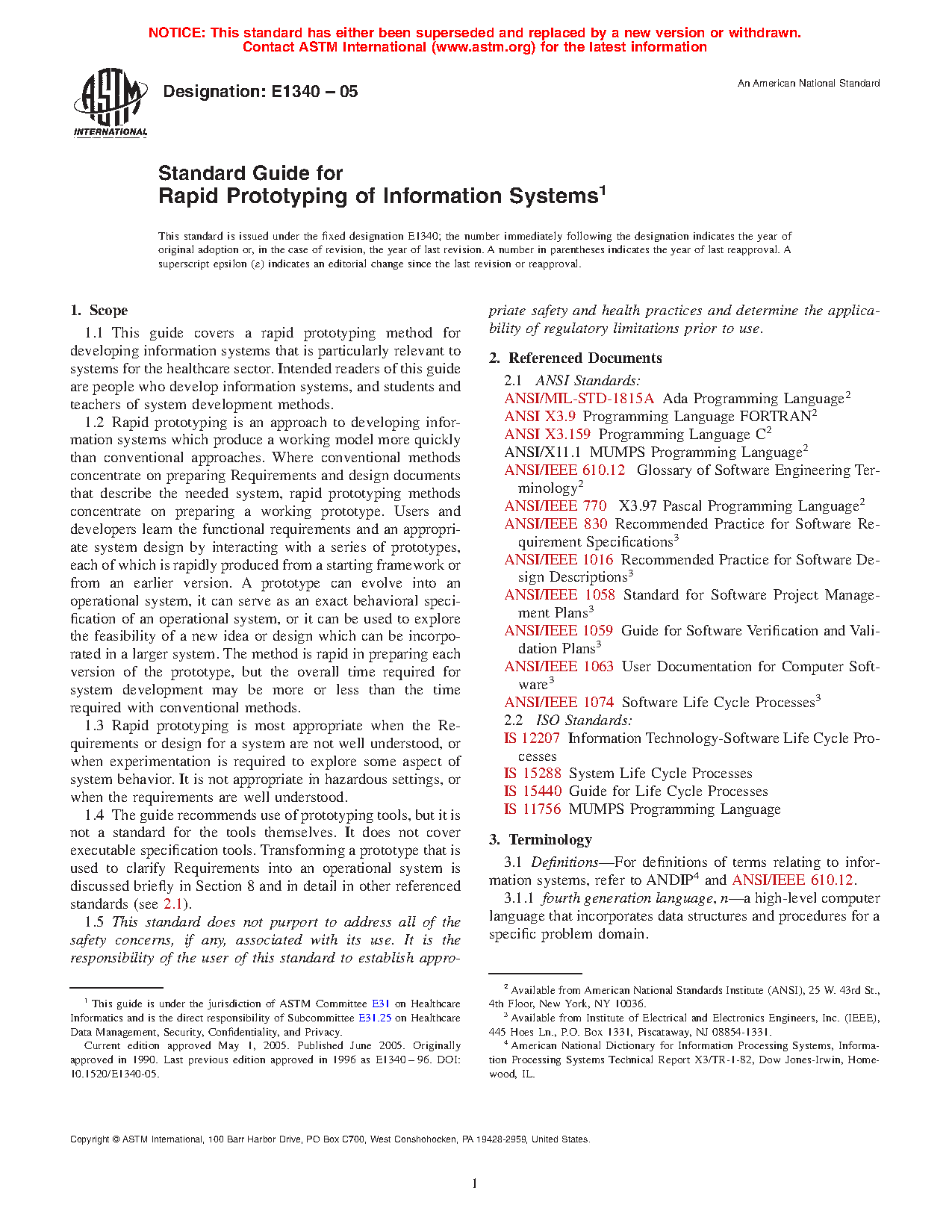 1.4 The guide recommends use of prototyping tools, but it is not a standard for the tools themselves. It does not cover executable specification tools. Transforming a prototype that is used to clarify Requirements into an operational system is discussed briefly in Section 8 and in detail in other referenced standards (see 2.1).