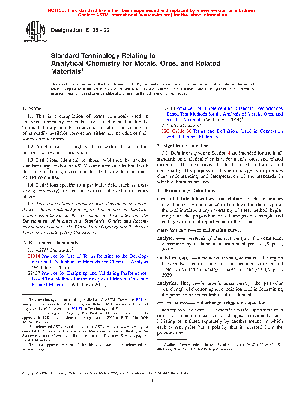 3.1 Definitions given in Section 4 are intended for use in all standards on analytical chemistry for metals, ores, and related materials. The definitions should be used uniformly and consistently. The purpose of these definitions is to promote clear understanding and interpretation of the standards in which the terms are used.