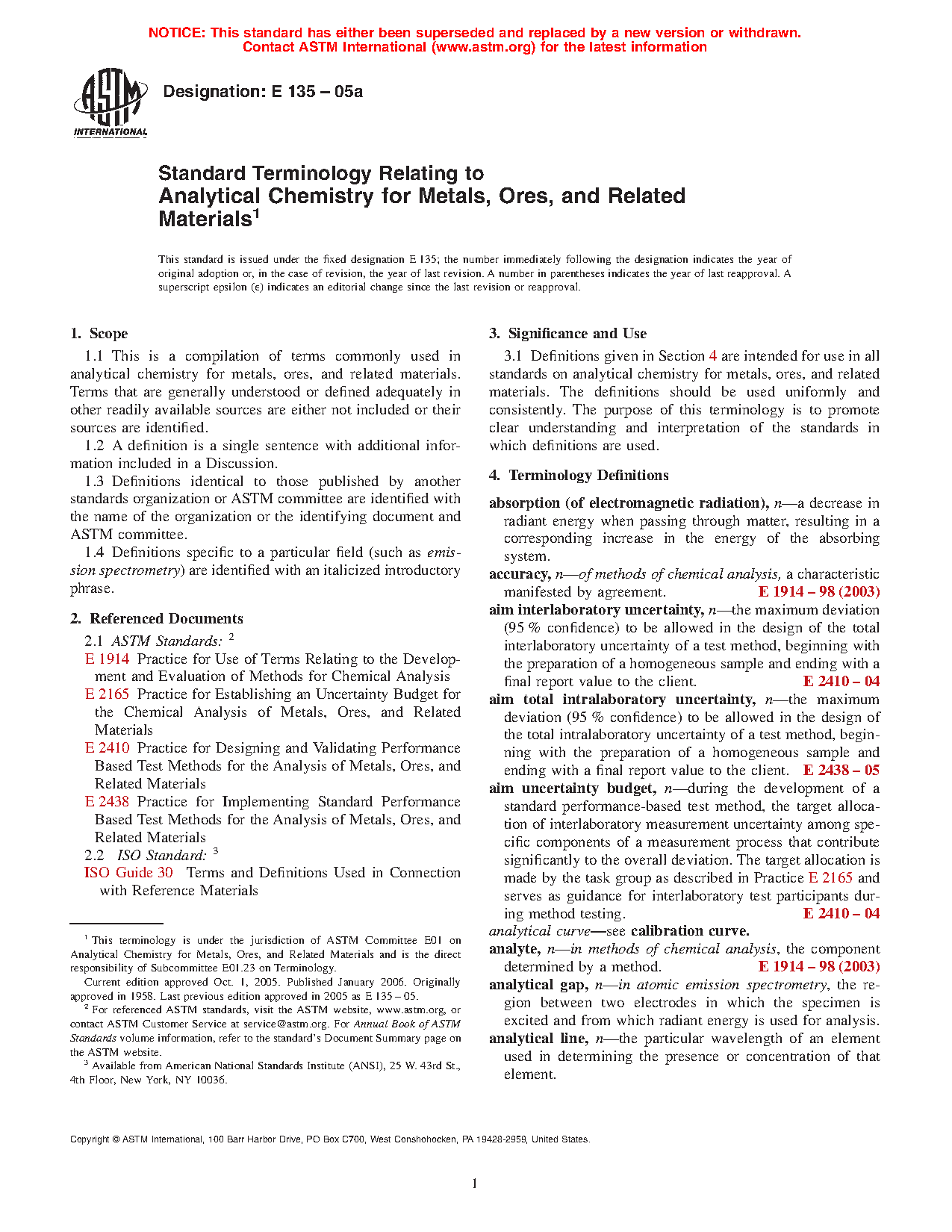 1.1 This is a compilation of terms commonly used in analytical chemistry for metals, ores, and related materials. Terms that are generally understood or defined adequately in other readily available sources are either not included or their sources are identified.