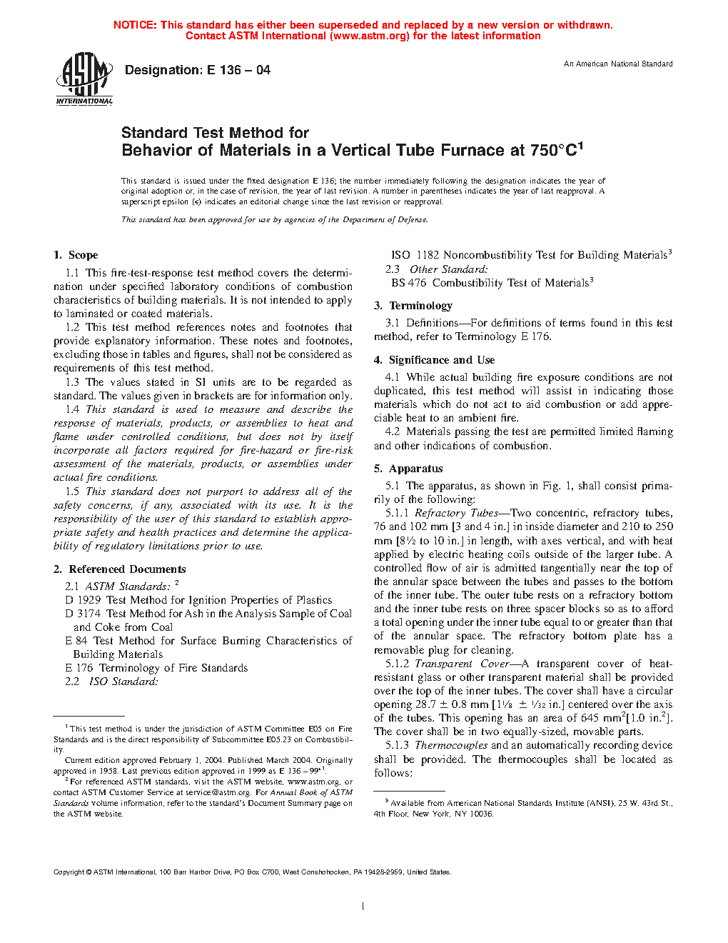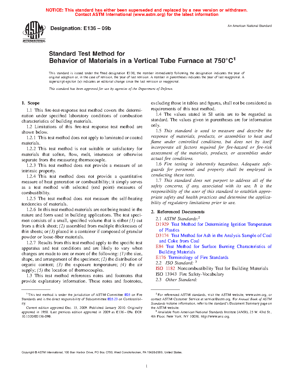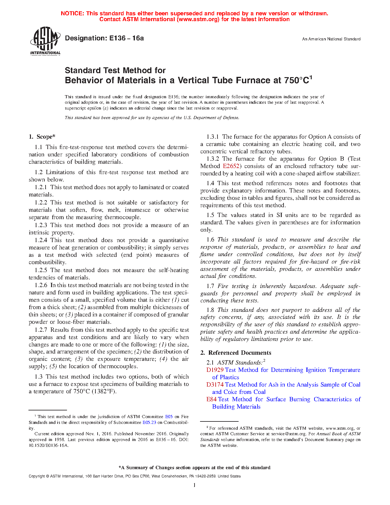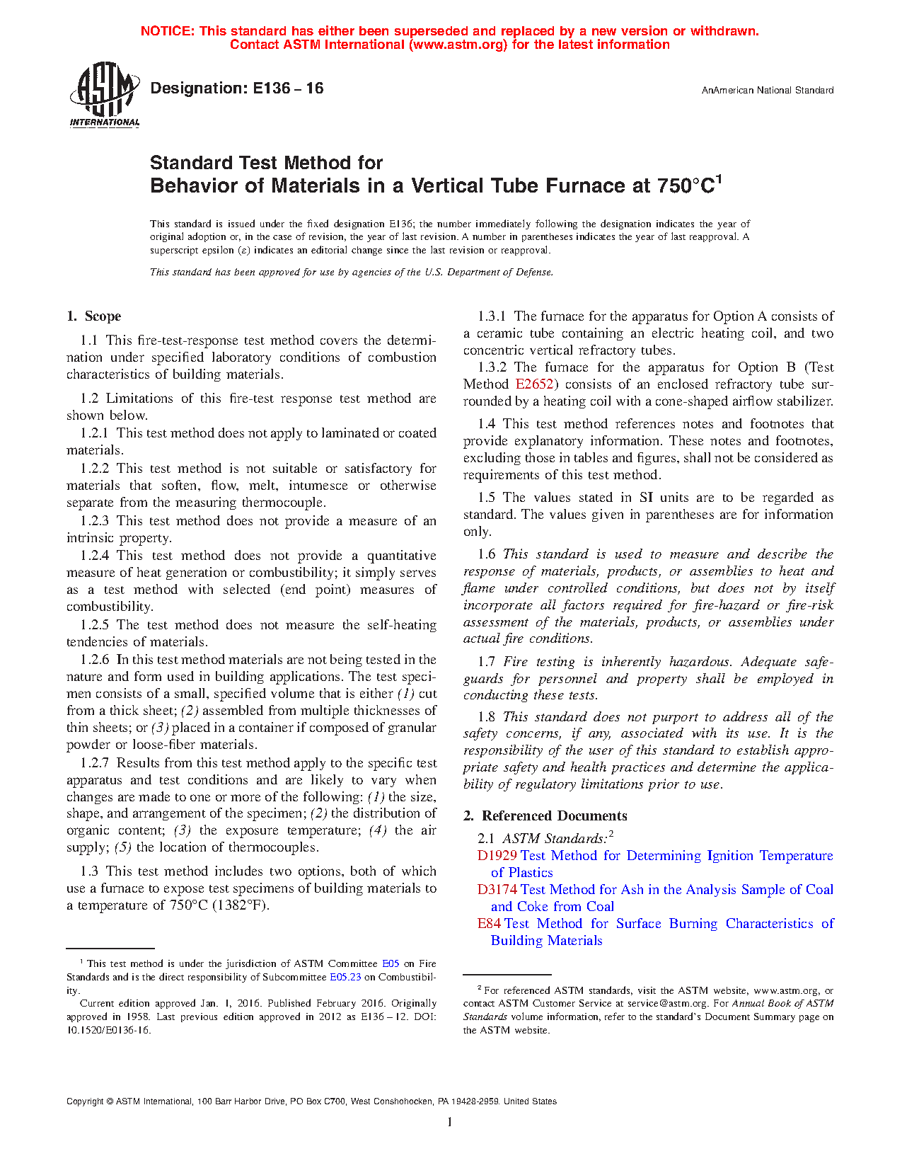 1.3 This test method includes two options, both of which use a furnace to expose test specimens of building materials to a temperature of 750°C (1382°F).