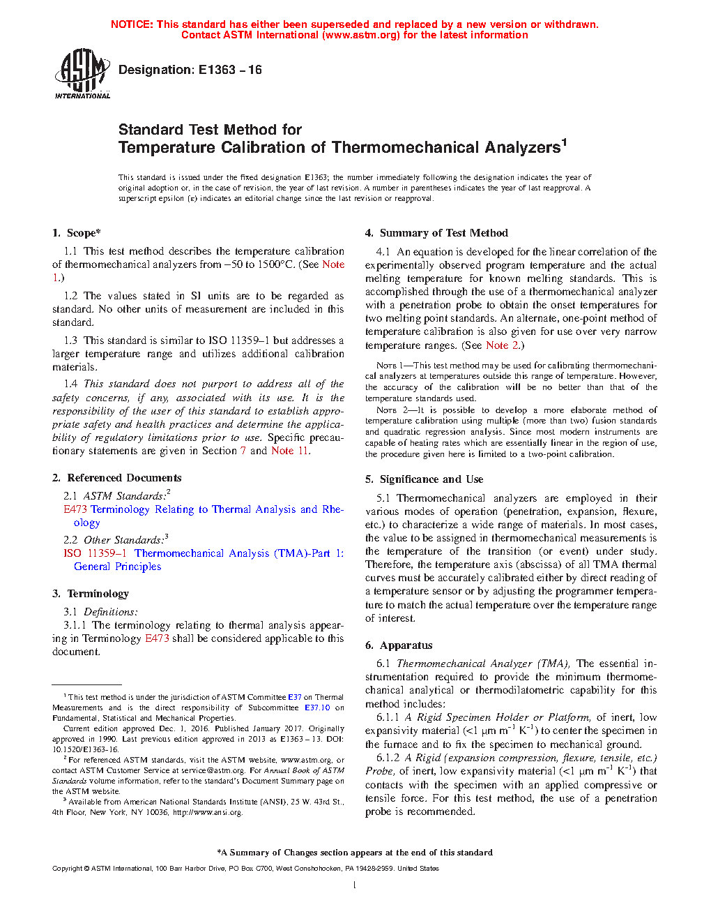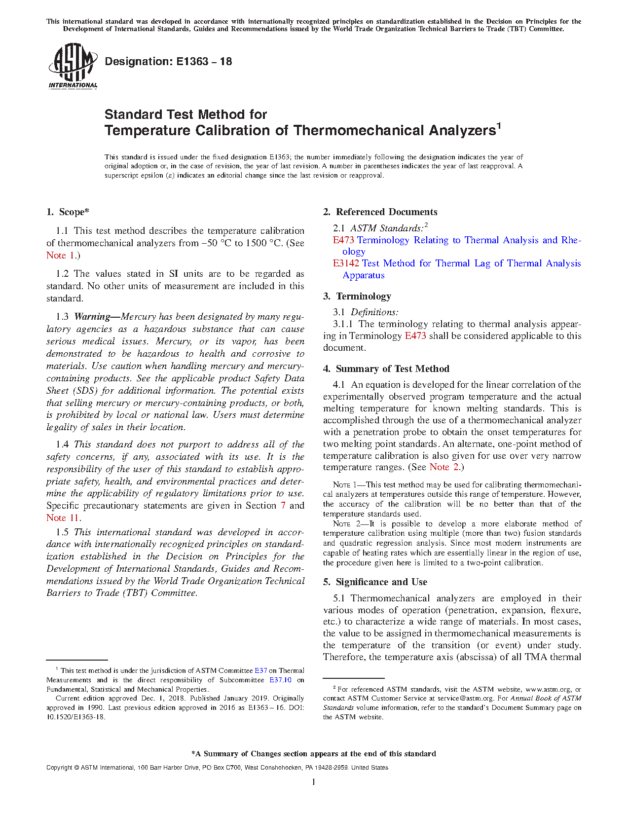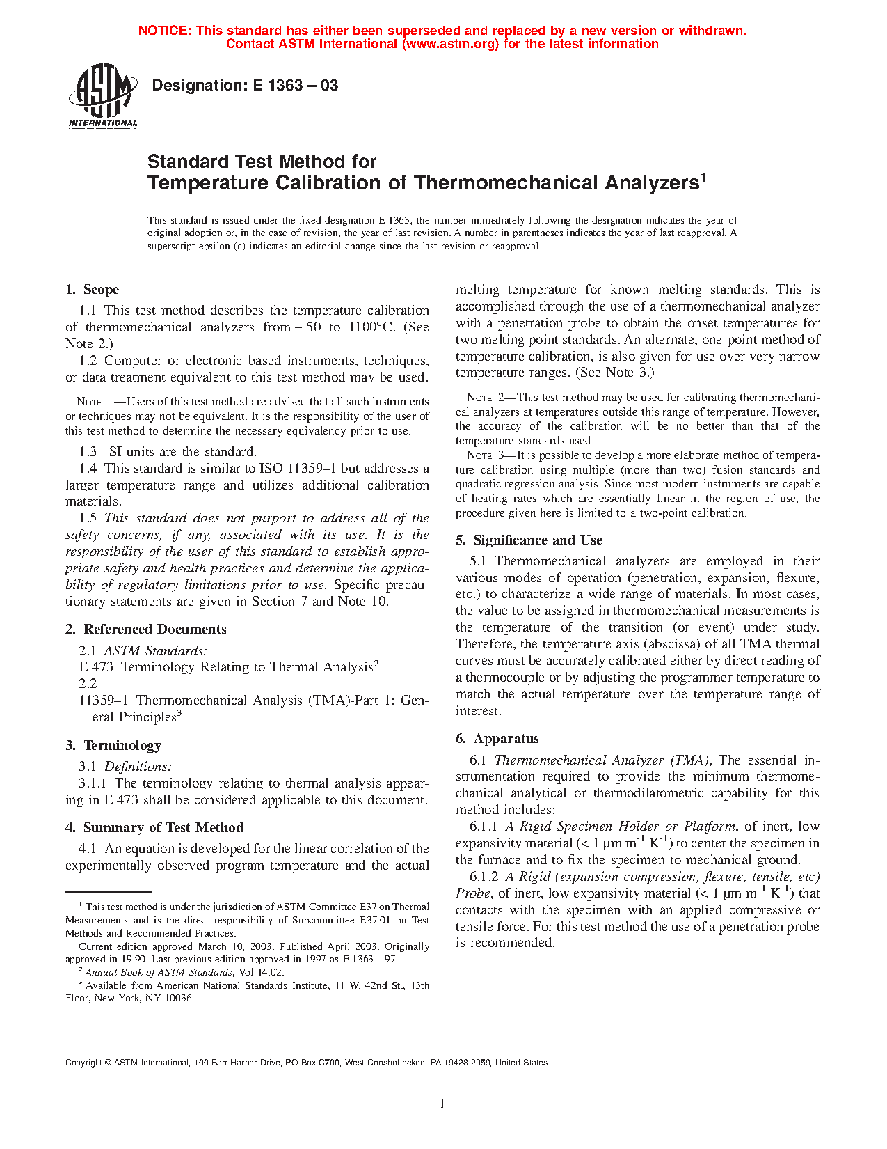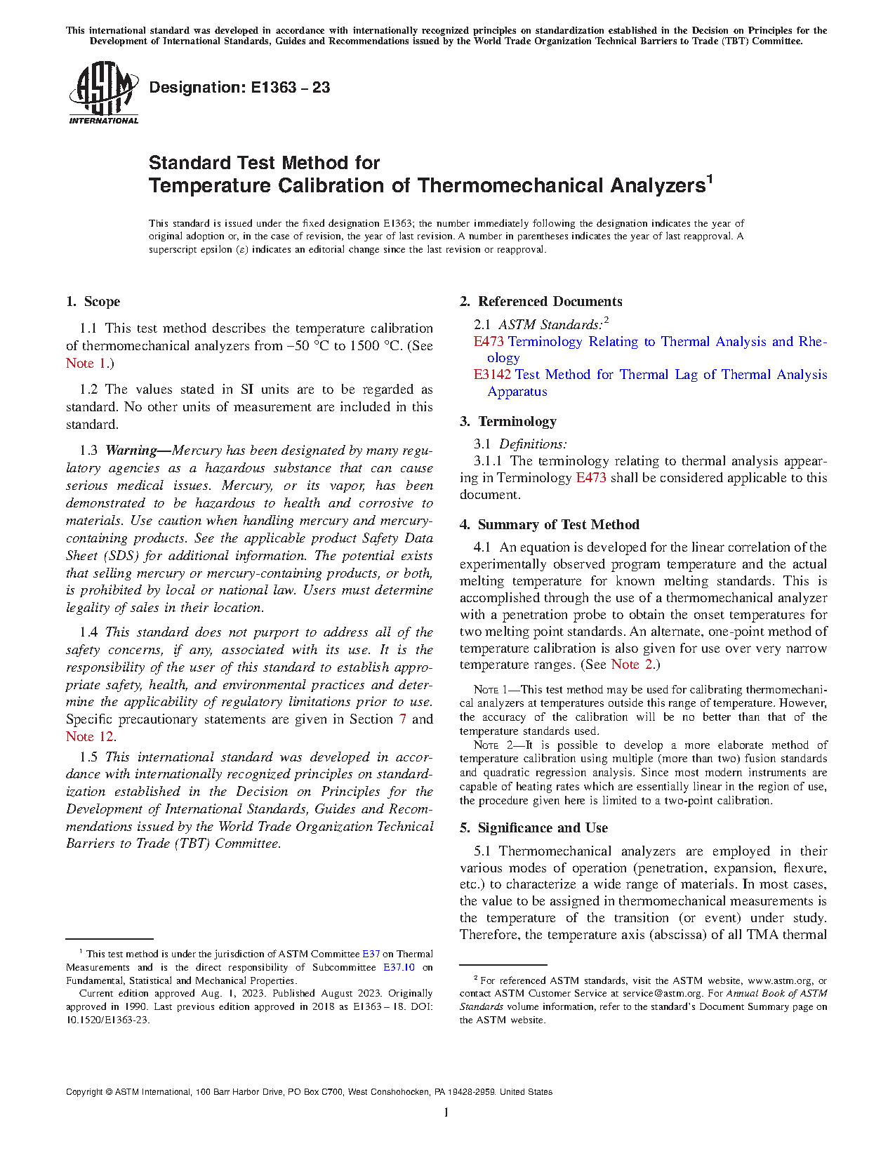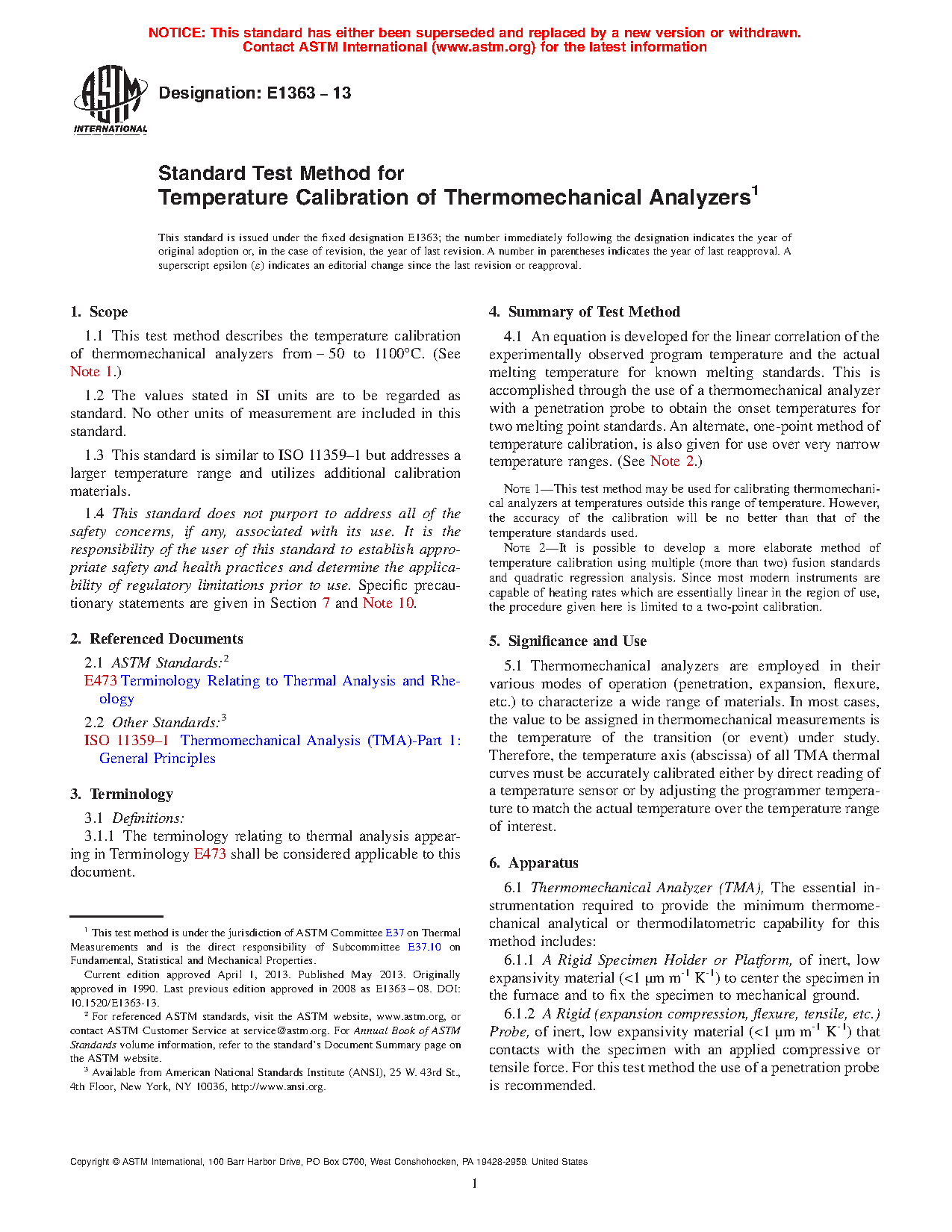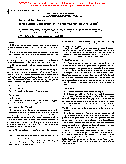 1.1 This test method describes the temperature calibration of thermomechanical analyzers from -50 °C to 1500 °C. (See Note 1.)