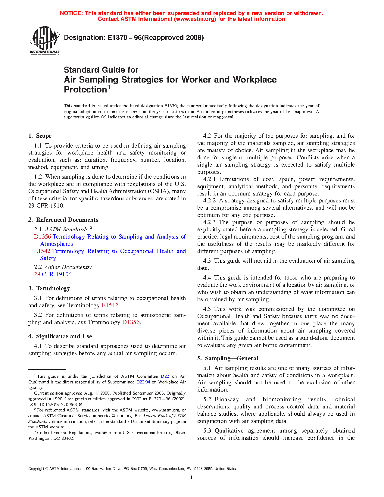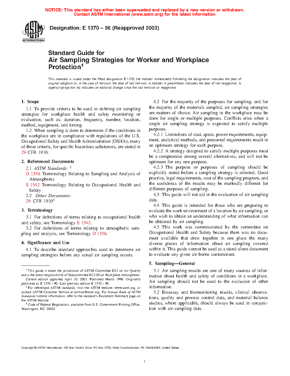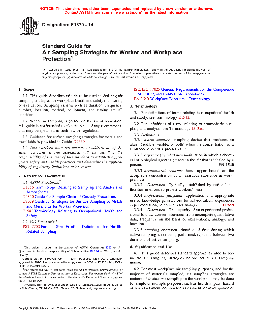 4.4 This guide should not be used as a stand-alone document to evaluate any given airborne contaminant(s).