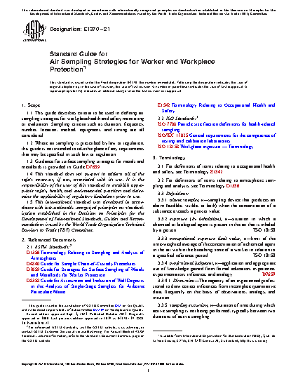 1.1 This guide describes criteria to be used in defining air sampling strategies for workplace health and safety monitoring or evaluation. Sampling criteria such as duration, frequency, number, location, method, equipment, and timing are all considered.