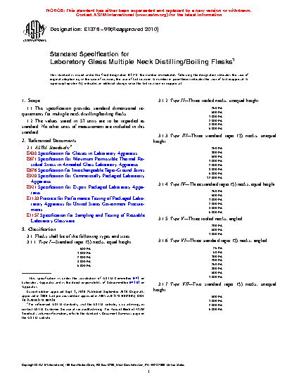 1.1 This specification provides standard dimensional requirements for multiple neck distilling/boiling flasks.