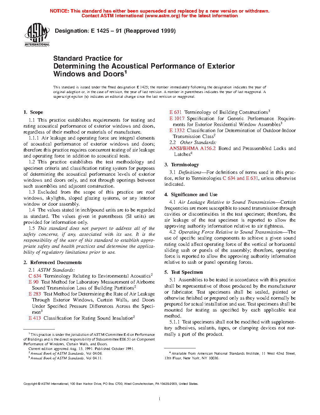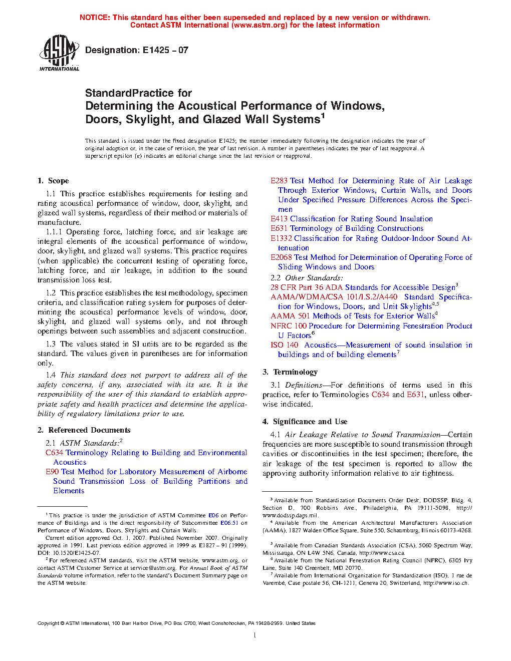 Note 1—The AAMA/WDMA/CSA 101/I.S.2/A440 document provides air leakage acceptance criteria for these products based on their performance class. Acoustical products could require a lower air leakage rate than what is required in this standard in order to achieve the desired acoustical performance.
